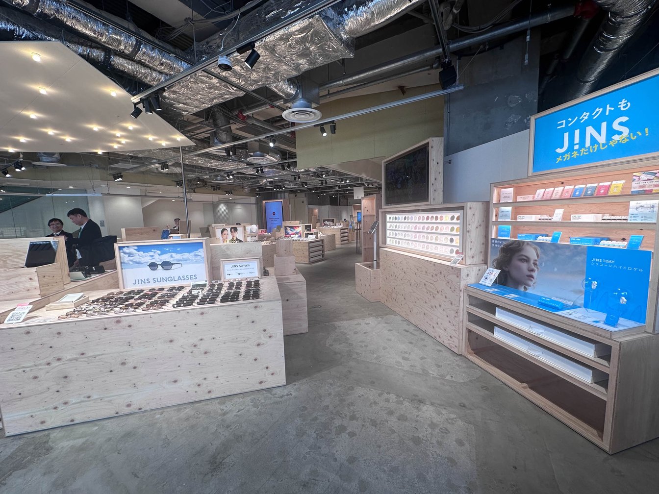 地上1階から3階までの3層構成で、店舗延床面積はジンズ最大の約1000平方メートル。最多となる約1300点の商品が揃う。