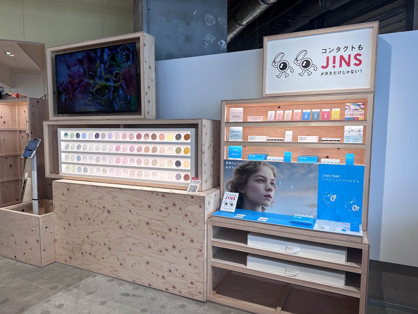 1階の入り口脇では、これまで一部店舗とオンラインで取り扱ってきたコンタクトレンズを紹介。8色展開のカラーコンタクトとワンデーコンタクト、3月に発売した瞳の負担を軽減するワンデーコンタクト「シリコーンハイドロゲルモデル」の3ラインをフルラインナップし、ほぼ全商品を即日購入することができる。