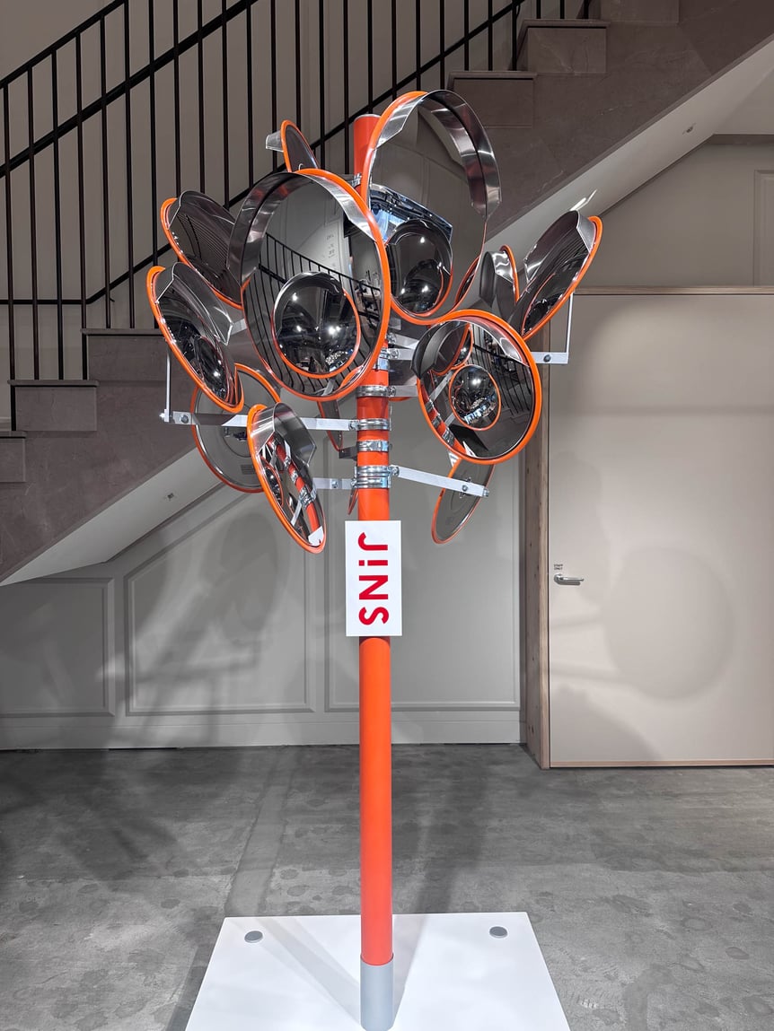 店舗入り口と1階店内には、現代美術家の田村琢郎の作品を常設展示。カーブミラーや道路をモチーフに、複雑に交差する人の視線といった新宿のイメージを表現している。
