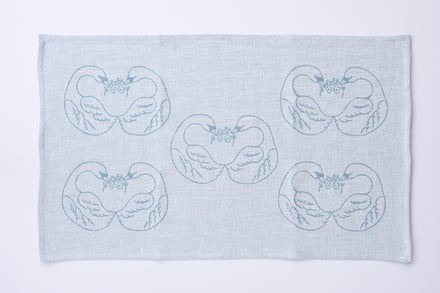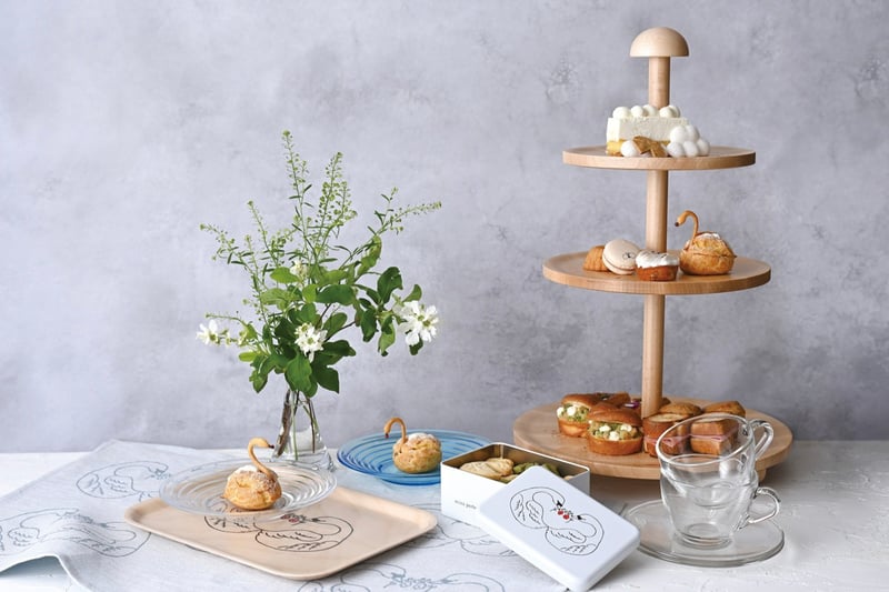 初のコラボは、衣・食・住のそれぞれの領域で暮らしを見つめてきた3社が共有する、ものづくりを通じて豊かな食体験を提供したいという思いから始動した。「To svaner」と名付けたイベントモチーフは、ミナ ペルホネンのデザイナー 皆川明がデザイン。題材にはアンデルセンとゆかりのあるデンマークの国鳥である白鳥を採用し、デニッシュペストリー「クリンゲル」のシルエットを描くように双子の白鳥を配した。