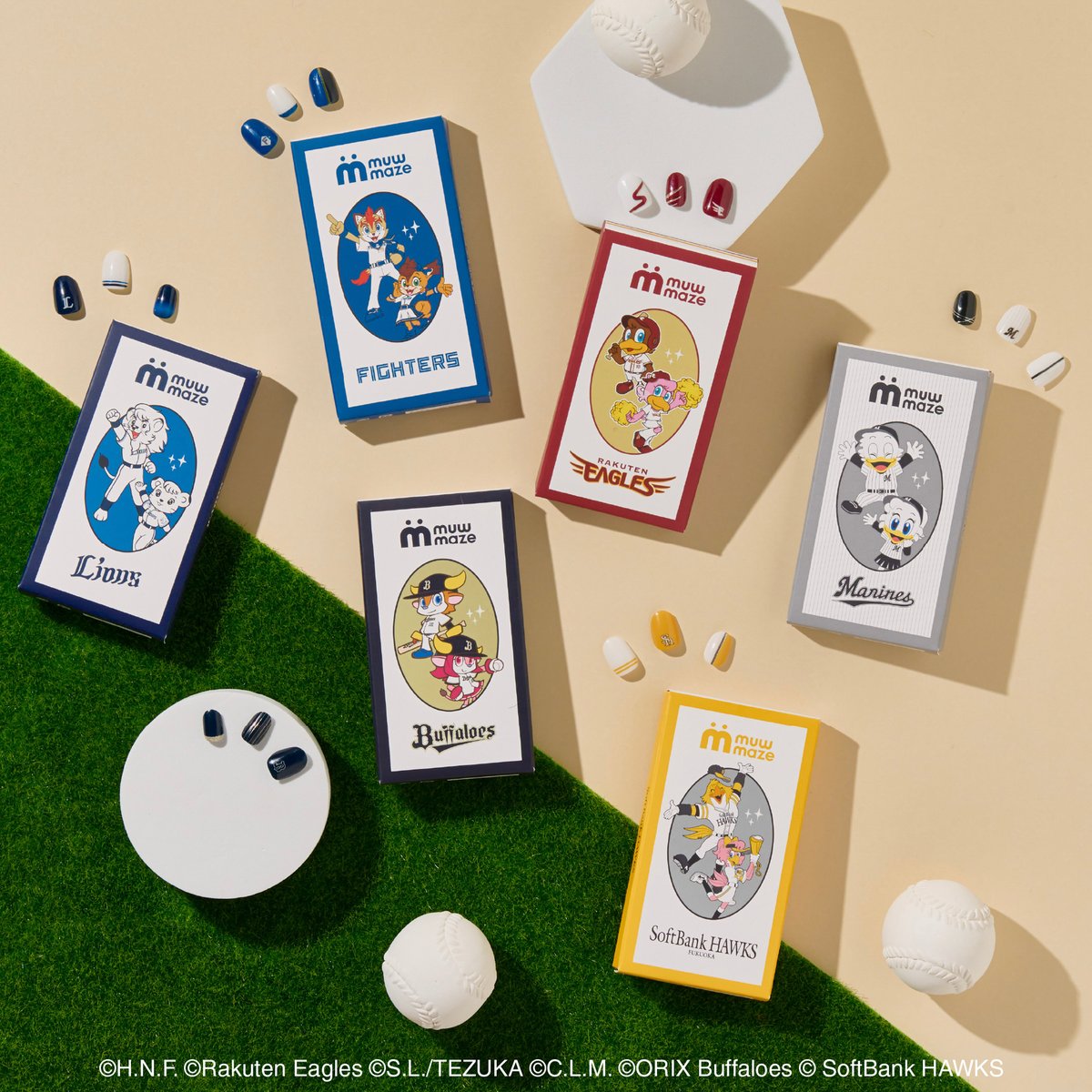 “推し”とファンをネイルシールのデザインで繋ぐコーセーのプラットフォーム「ミュウ メイズ(muw maze)」が、 パシフィック・リーグ6球団とのコラボレーションネイルシール「muw maze gel nail パ・リーグ6球団コレクション 」(28枚 2200円)を発売する。4月22日からmuw maze公式サイトで取り扱う。