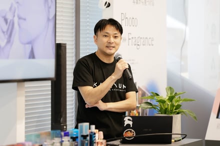 セントマティックの栗栖俊治代表取締役は、写真・ファッション・対話といった一見異なる要素について、「言葉」によって結びついていると語る。特に香りは、「言葉があって初めて印象や捉えやすさが明確になる」とし、曖昧になりがちな感覚に言語を重ねることで、新たな体験価値が生まれると説明した。多くの消費者は香りに対する好みを持ちながらも、自身の感覚や好みを言語化できず、選択時に戸惑いを感じているという。こうした課題に対し同社は、香りとの出合いそのものを前向きなものへと転換し、選択から日常的な使用、さらには次の香りとの出合いへとつながる“循環”の創出を目指す。