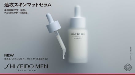 資生堂は年代・性別ごとの皮膚生理や嗜好性について長年にわたる研究を実施。その中で男性の肌における皮脂分泌量は、女性の肌と比較して多く、20代以降では同年代の女性と比較して2倍以上になるほか、ピークとなる20代以降もそれに近い水準を維持し続けるという点に着目。加えて、皮脂・テカリ・毛穴が顔印象を大きく左右することから、これらの悩みにアプローチする新商品「SHISEIDO メン スキンマットセラム」を開発した。