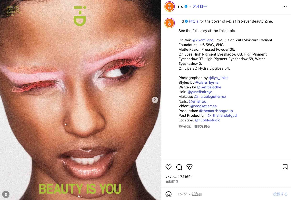 i-D Magazine公式インスタグラムのスクリーンショットより