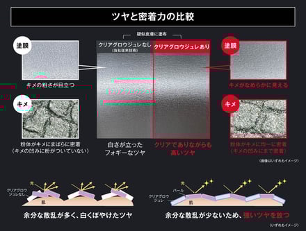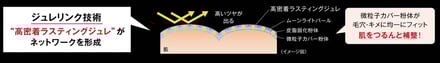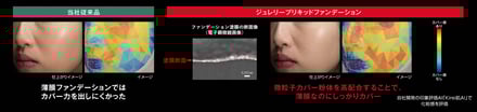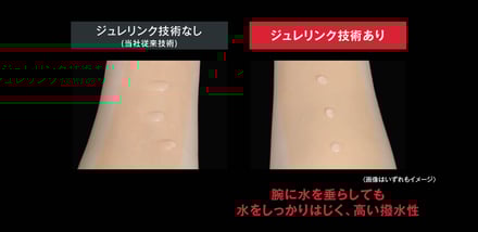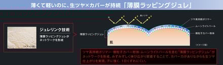 新作のジュレリープリキッドファンデーションは、ジュレがネットワークを形成し、“生ツヤ”をとどめる新技術「ジュレリンク技術」を採用。みずみずしく伸び広がり、肌の動きに柔軟に寄り添うことで、カバー力がありながら艶やかな仕上がりをキープする。