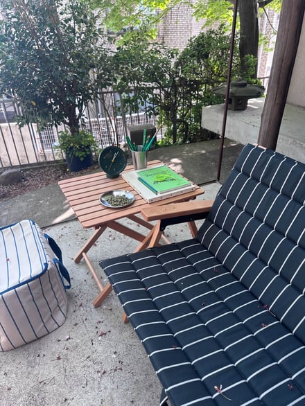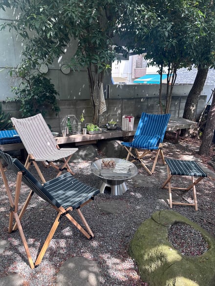 発売に先駆けて開催されたコレクションのローンチイベントは、代々木上原の古民家を改装したカフェ「Nadoya no katte」を会場に開催。「都市の中の休憩所」を表現した。