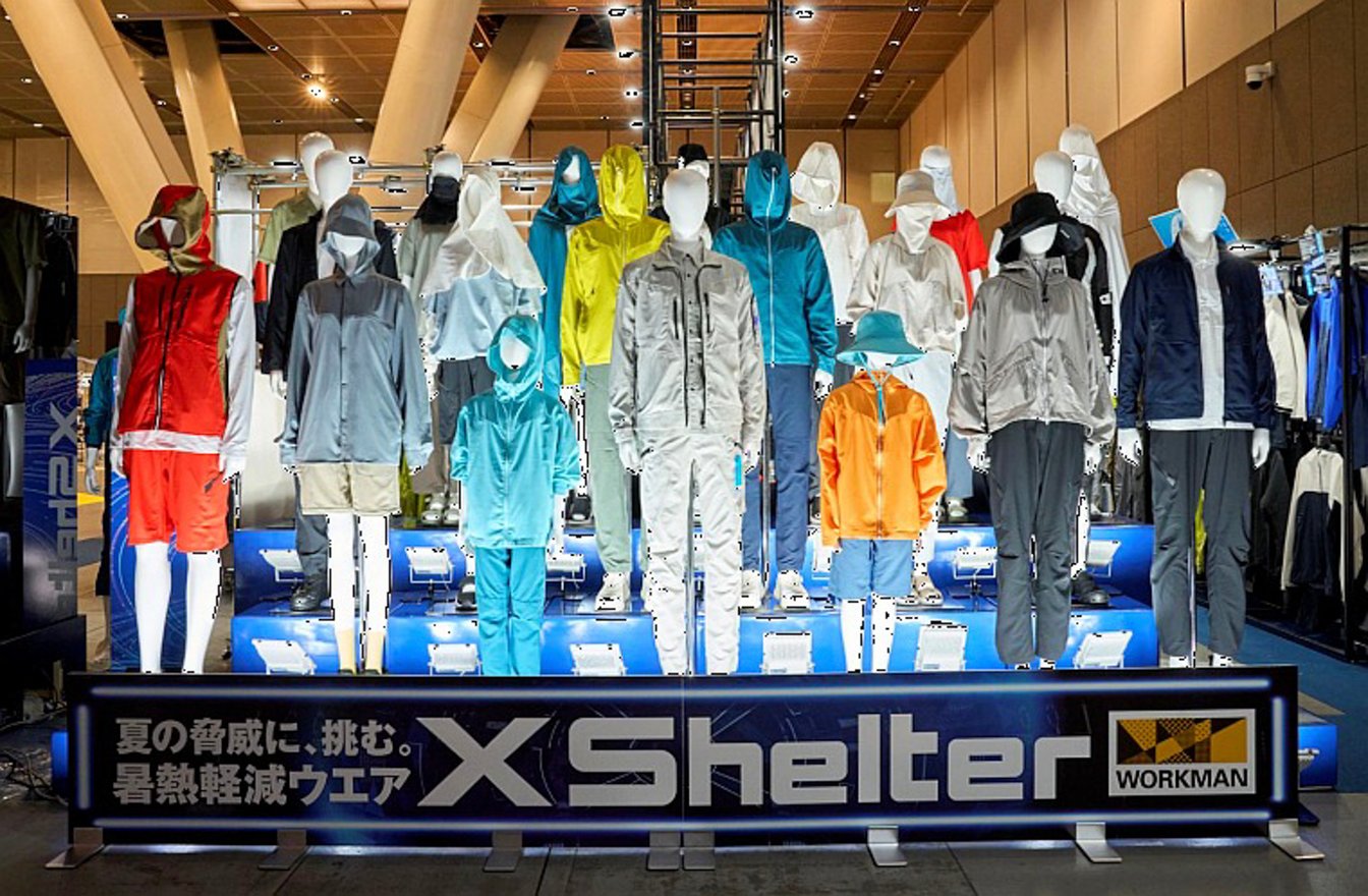 独自開発の断熱素材「エックスシェルター」を使った暑熱軽減服は、2年目を迎えて型数を20型に倍増、点数は8倍の278万点に増産。東レと開発した遮熱性と通気性の高い素材を組み合わせた高機能素材の45度対応のワークウェア、スーツやポロシャツ、作務衣、日傘など品目を拡充。エックスシェルター素材のファン付きウェアも販売する。