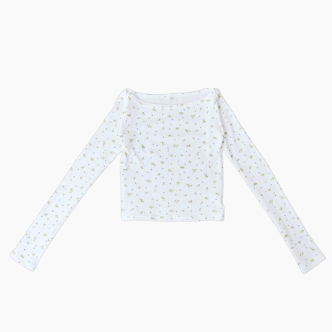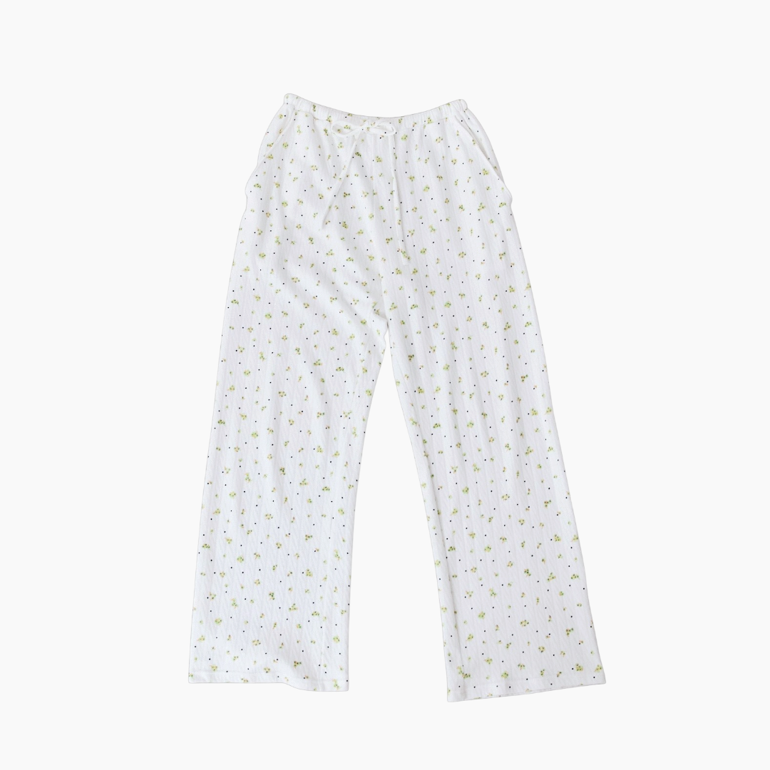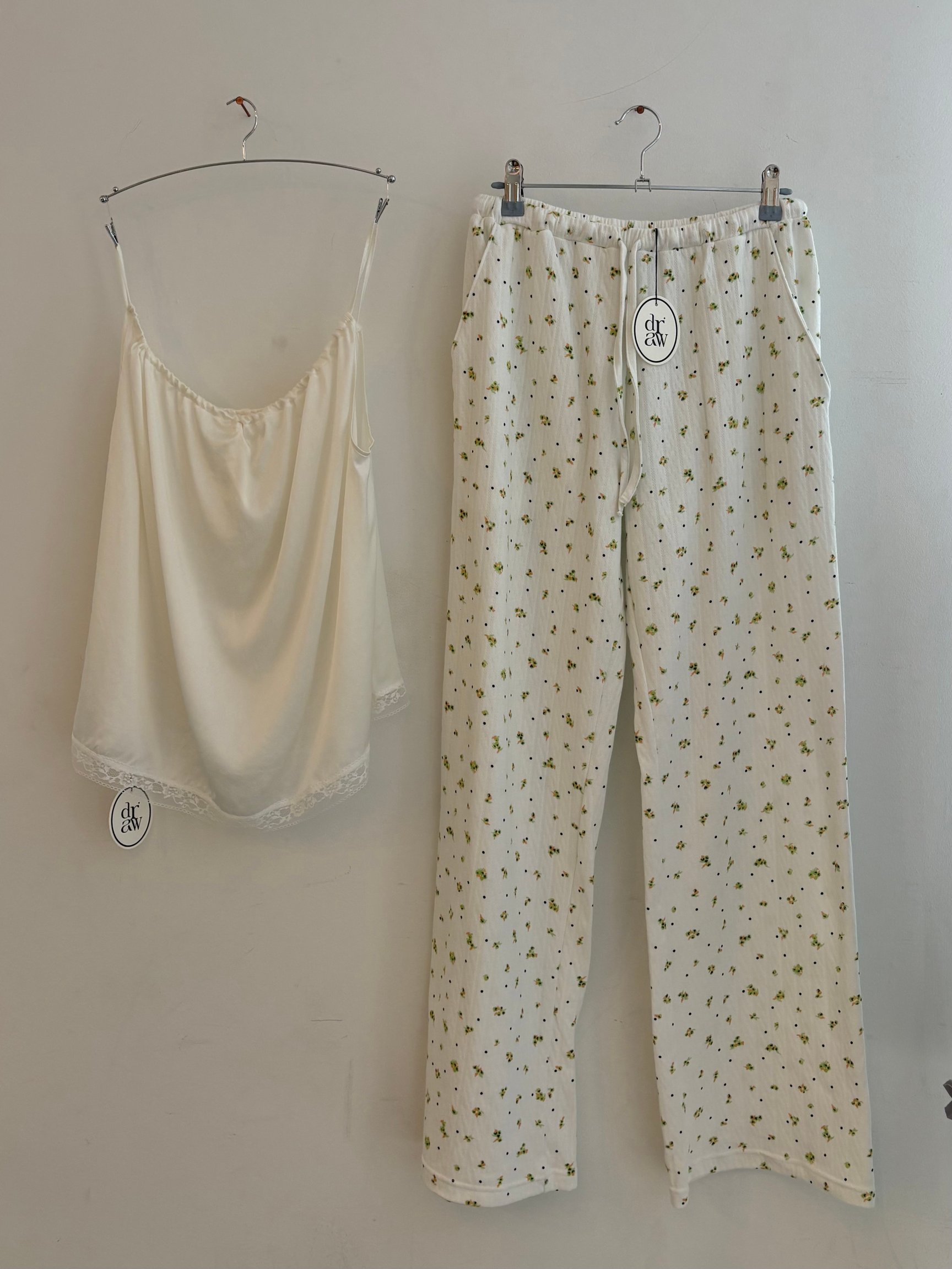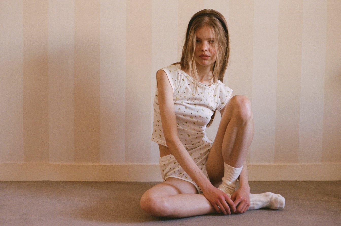 Kyokaが2年前にパリを訪れた際、偶然立ち寄った生地屋で見つけたデッドストック生地に着想を得たオリジナルの花柄のアイテムも用意。生地には一般的にベビーウェアに使用されるガーゼ素材を採用し、夏場の蒸れや擦れによる肌への負担の軽減を目指した。同柄はランジェリーのほか、定番型の「ボートネック ロングティー」(1万6500円)や「エンジェルティー」(1万3200円)、イージーパンツ(1万7050円)を揃える。