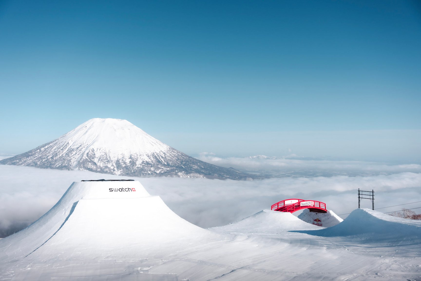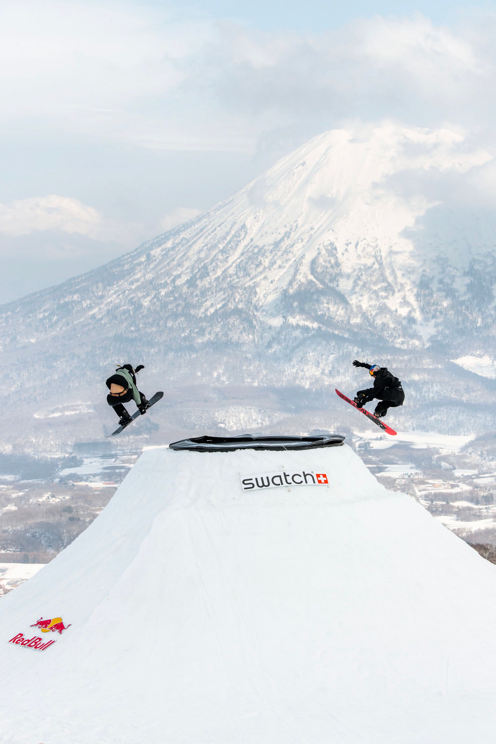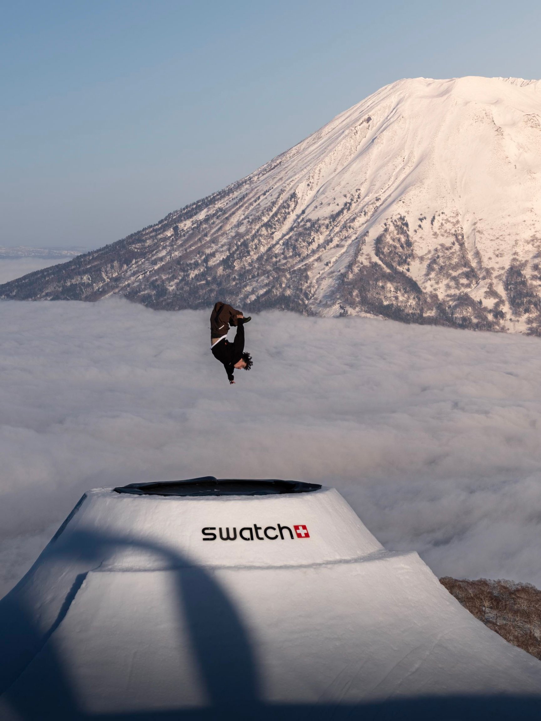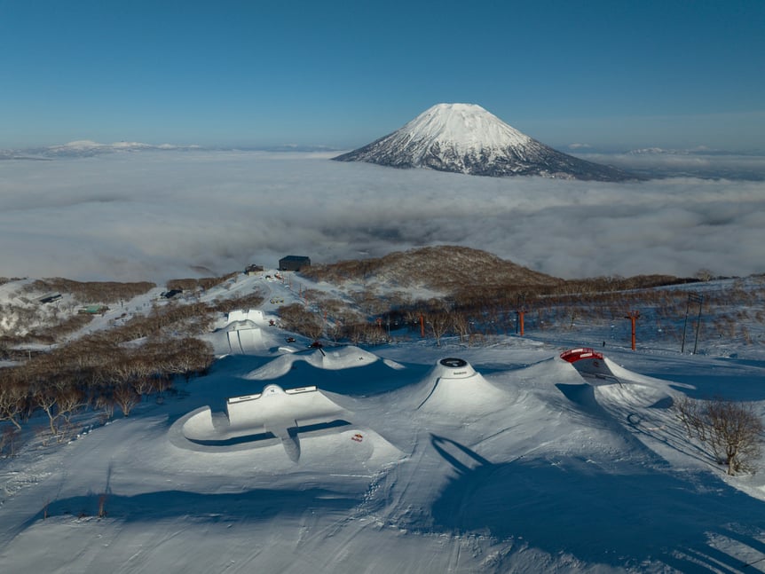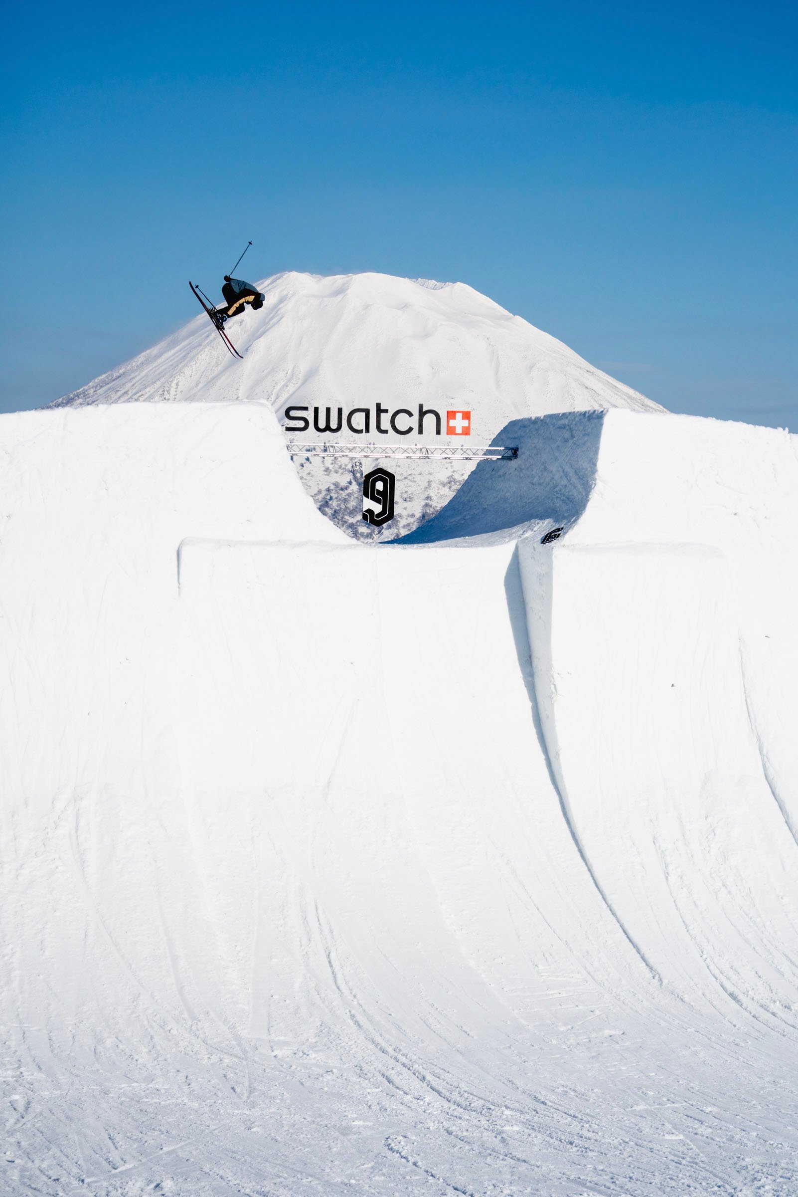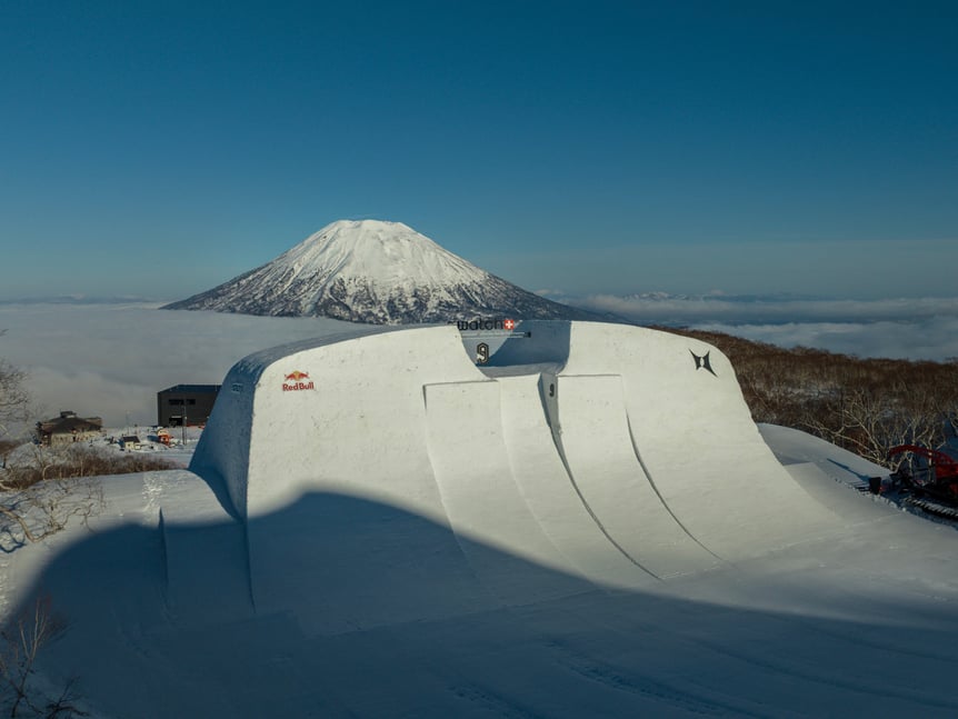 また、「スウォッチ ナインズ」初のアジア上陸となったニセコ開催に踏み切った理由については、「会場設営には大量の雪が必要なので、ニセコが世界有数の豪雪地帯であることは決め手の一つでした。それに、羊蹄山の存在も大きいですね。写真に写るだけで、ヨーロッパの山とは違う“日本らしさ”が現れるのは魅力です。ただ、雪質や天候がヨーロッパとは異なり、多くの学びがありました」と説明してくれた。