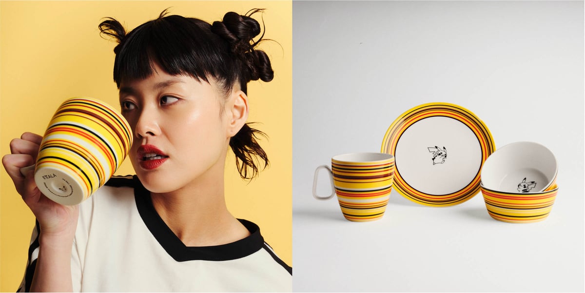 コラボはポケモン30周年を記念して実現。ポケモンと同じ1990年代後半に誕生した、イッタラを代表するテーブルウェアシリーズのひとつである「オリゴ(Origo)」をベースに、「ピカチュウ」のイメージをデザインに落とし込んだ。ピカチュウにインスパイアされたイエローやブラウンなどを組み合わせ、オリゴの特徴であるカラーストライプを表現したという。マグ、ボウル、プレートの3型を揃え、価格は5280〜5万5500円。