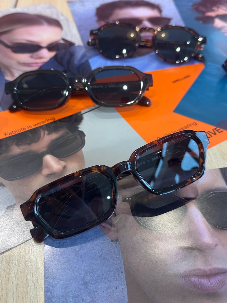 メラーは2014年に誕生。エッジの効いたジェンダーレスなデザインと、フレームやレンズにペットボトルをリサイクルした再生プラスチックやバイオ素材を使用したサステナブルな生産体制の両立によって、欧州の若年層を中心に支持を集めている。スペイン・バルセロナの強い日差しに対応するべく、サングラス全モデルに紫外線カット99%機能と眩しさを軽減する偏光レンズを搭載している点も特徴だ。