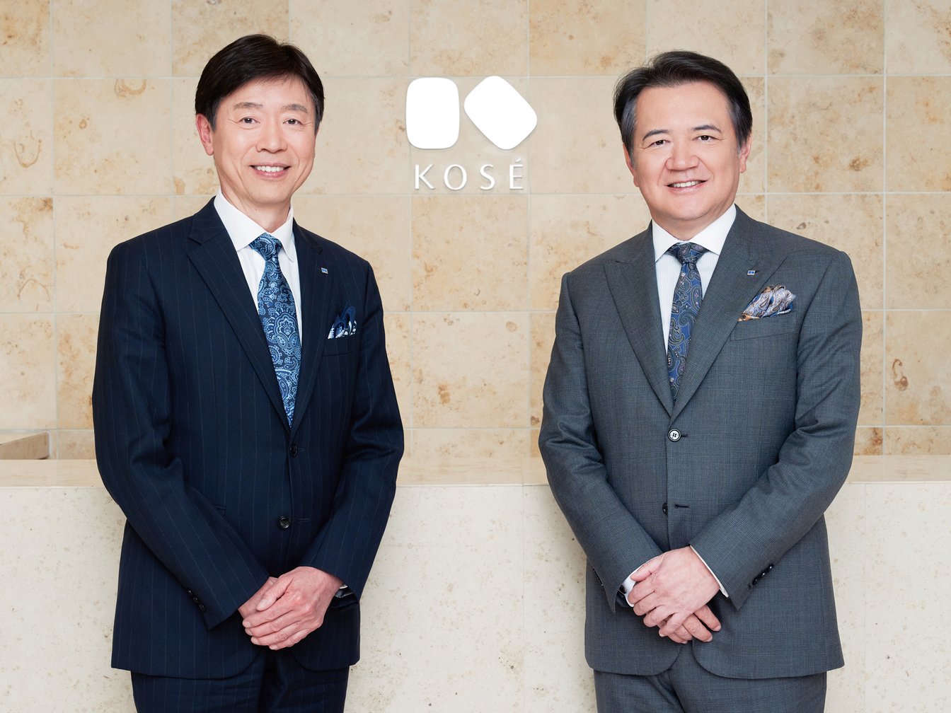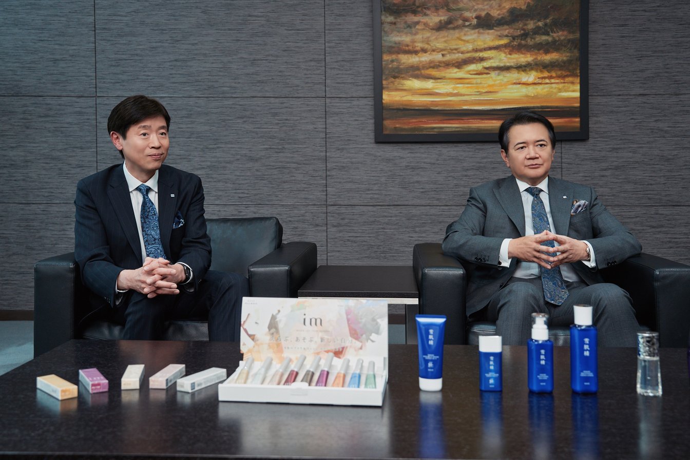 左から、澁澤宏一 コーセーホールディングス 代表取締役社長グループCOO、小林一俊 コーセーホールディングス 代表取締役会長グループCEO