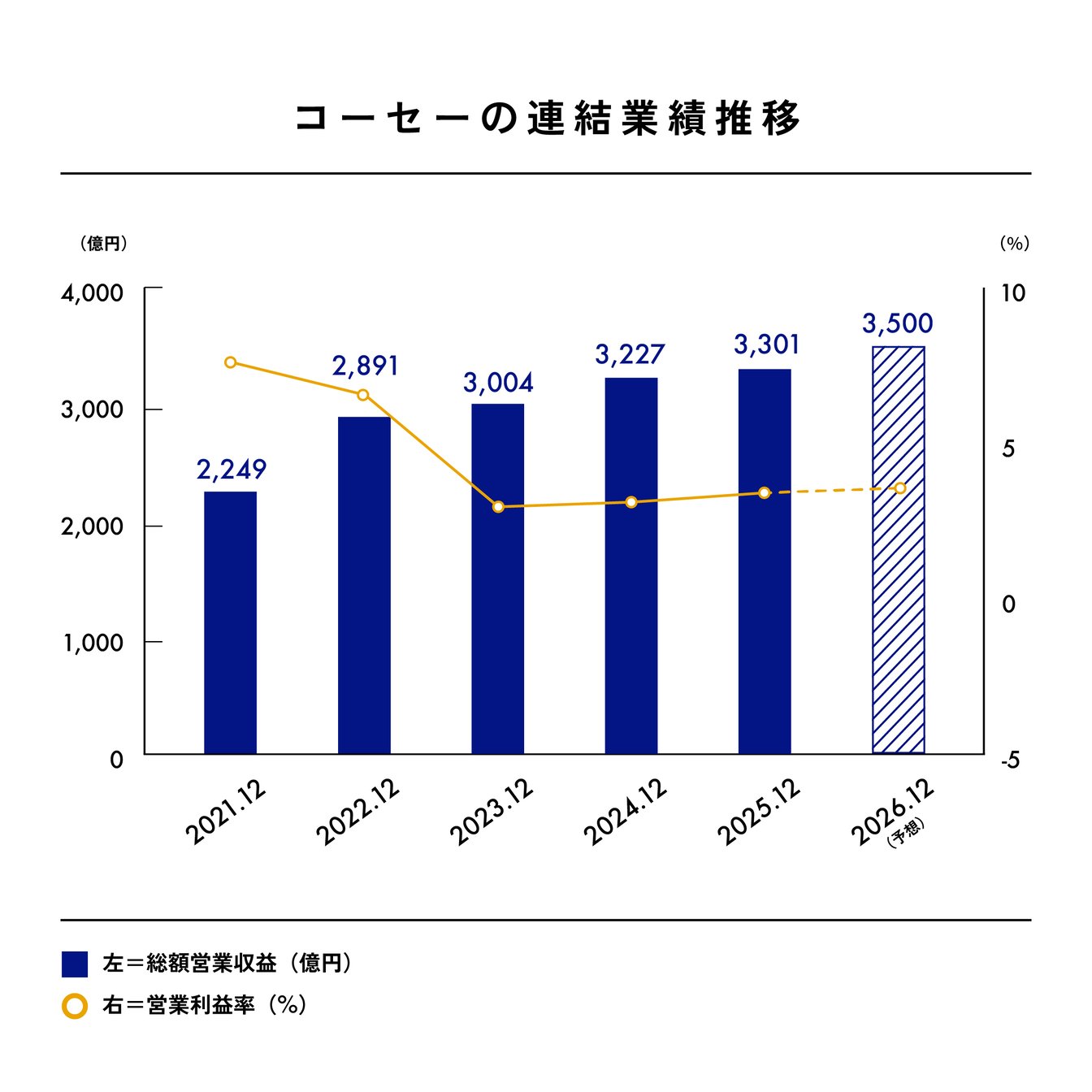 小林一俊 代表取締役会長グループCEO(以下、小林):2030年をマイルストーンとした新たな中長期ヴィジョン「Vision for Lifelong Beauty Partner―Milestone2030」において、連結売上高の成長指標として年平均成長率(CAGR)5%以上を目標に掲げていますが、コーセーグループの現在の規模と化粧品業界でのポジショニングを考慮すると、1人の経営者が把握できる範囲を超えていると判断しました。