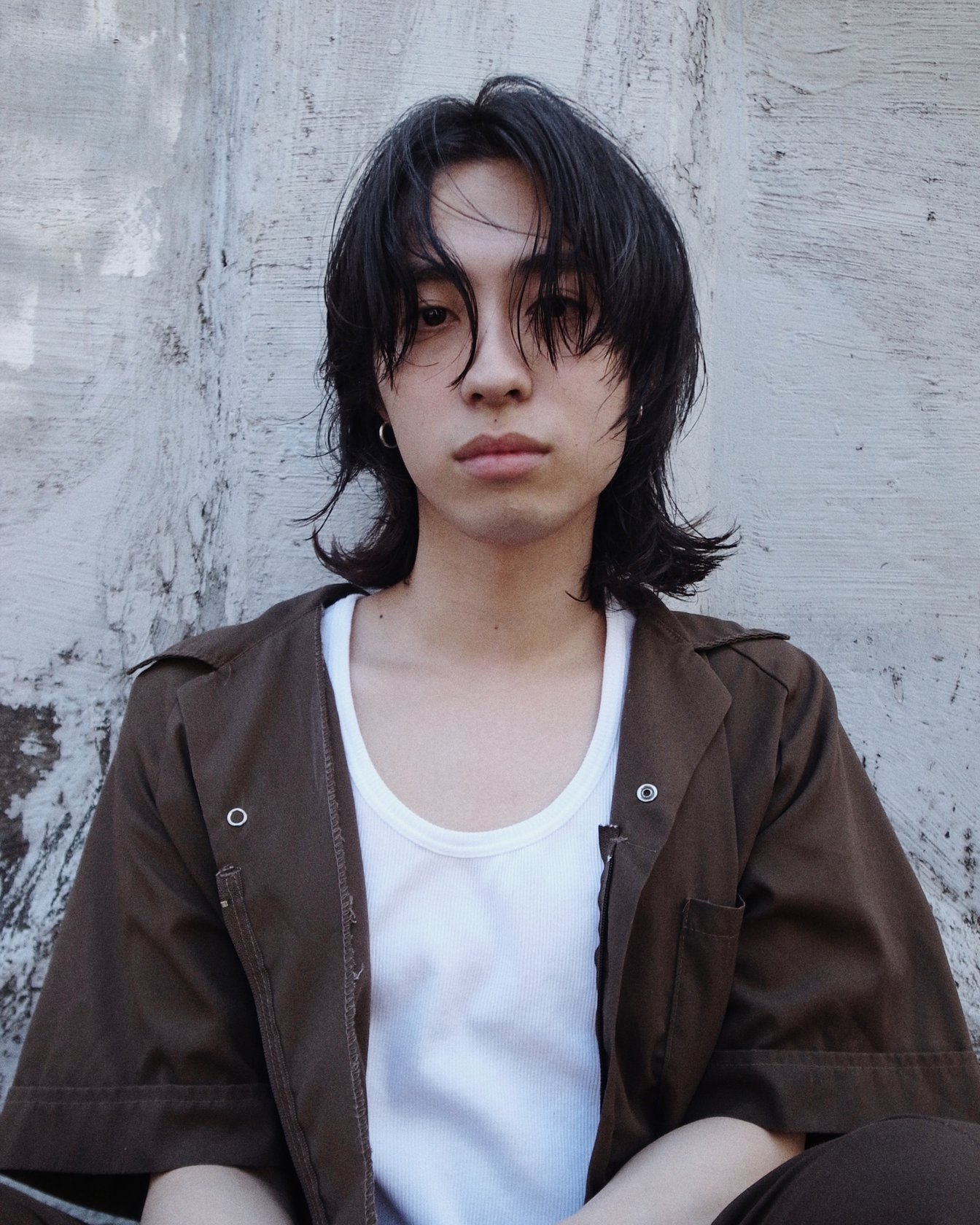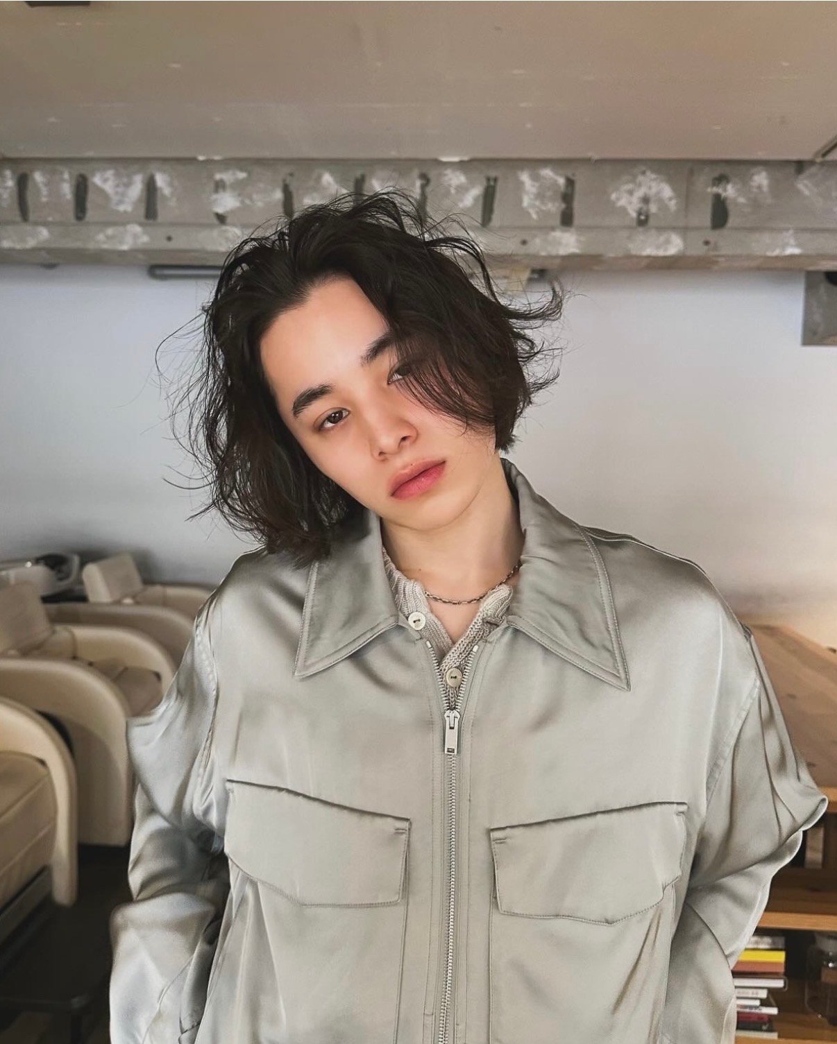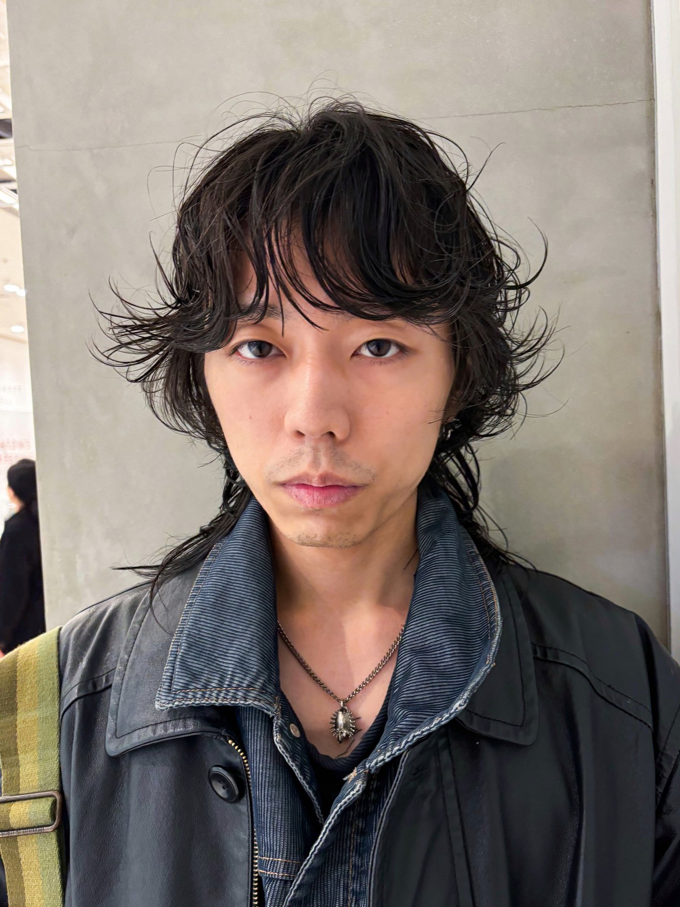 モード、ストリート、Y2Kに合うスタイルです。90年代を意識したロングヘアなのでカジュアルにするのもよし、結んだりもよし。レイヤーが入っていて軽さがあるので無造作でもヘアスタイルが決まるのが魅力です。セットすると濡れ感・動きがよく出ます。オーダーの際には、肩につくくらいの長さ。前髪は目にかかる長さを残してセンター分けで、表面は軽くしすぎず、束感が出るレイヤー。襟足は薄くしすぎず、首に沿う長さでお願いします。(@shinyakoyama0825)
