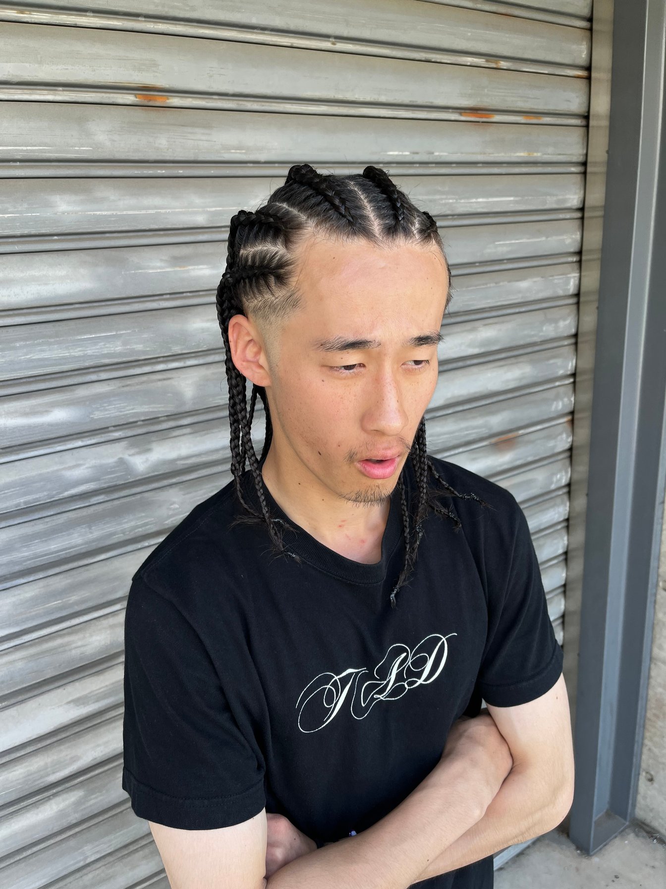 ロングの人であればぜひ一度。ストリート一択の髪型に見えますが、意外とどんなシーンでも行けちゃうのは、数々のヒップホップスタアが証明してると思います。オーダーはストレートバッグのコーンローにしてくださいと伝えてください。(@rin_jiasheng)