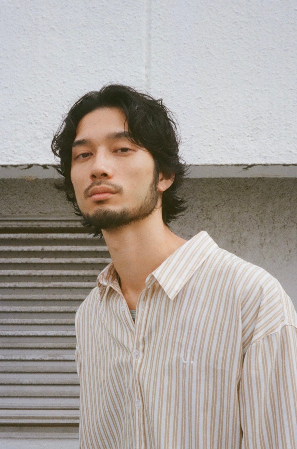 アメカジ、ヴィンテージ好きな人に相性抜群!髭がある方は尚おすすめです。あえて野暮ったくルードに仕上げることで、雰囲気をぐっとプラス。ミディアムなウルフヘアとオーダーしましょう。襟足は残して、前髪も下ろしても分けてもいける長さに設定すると良いと思います。(@shinyakoyama0825)