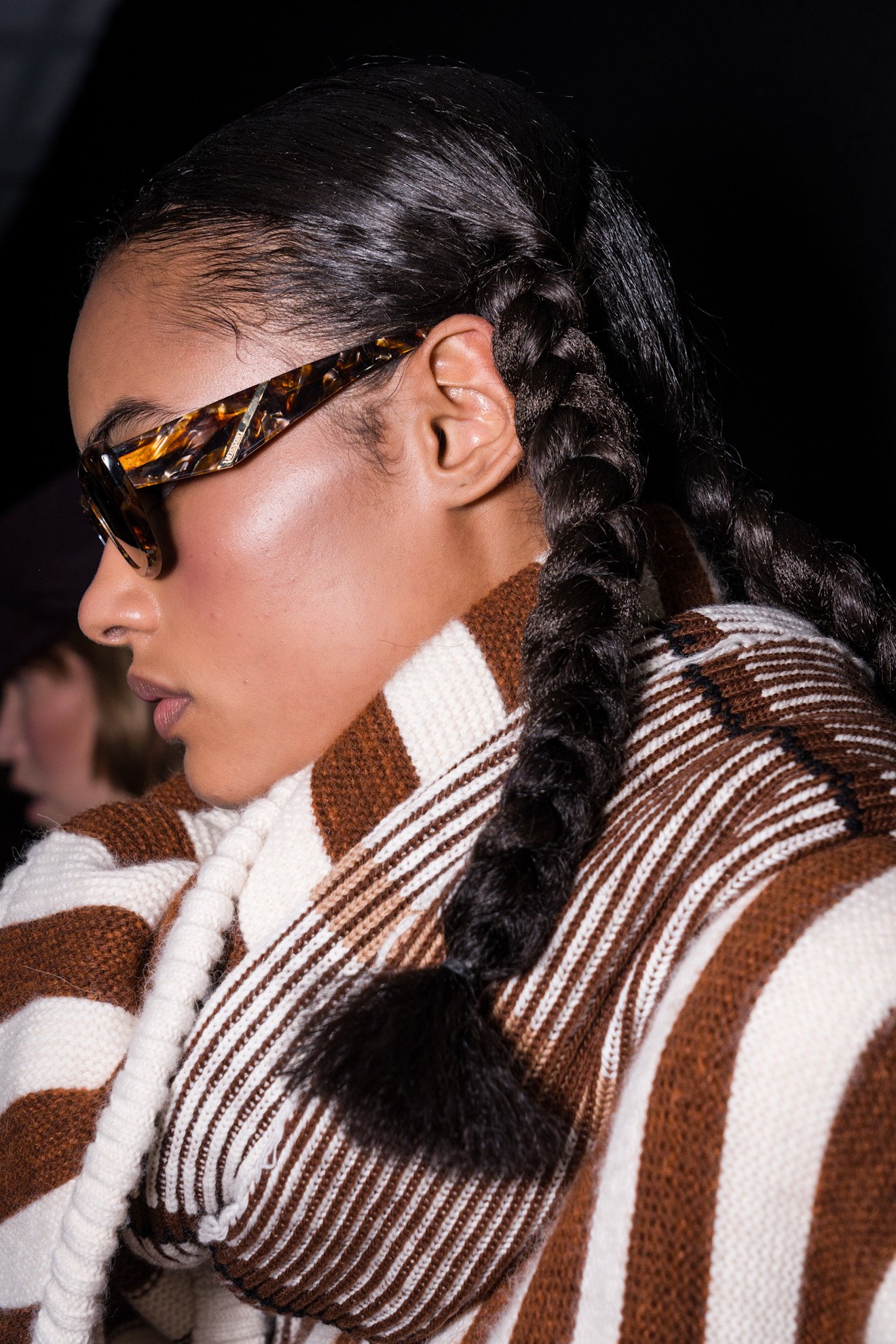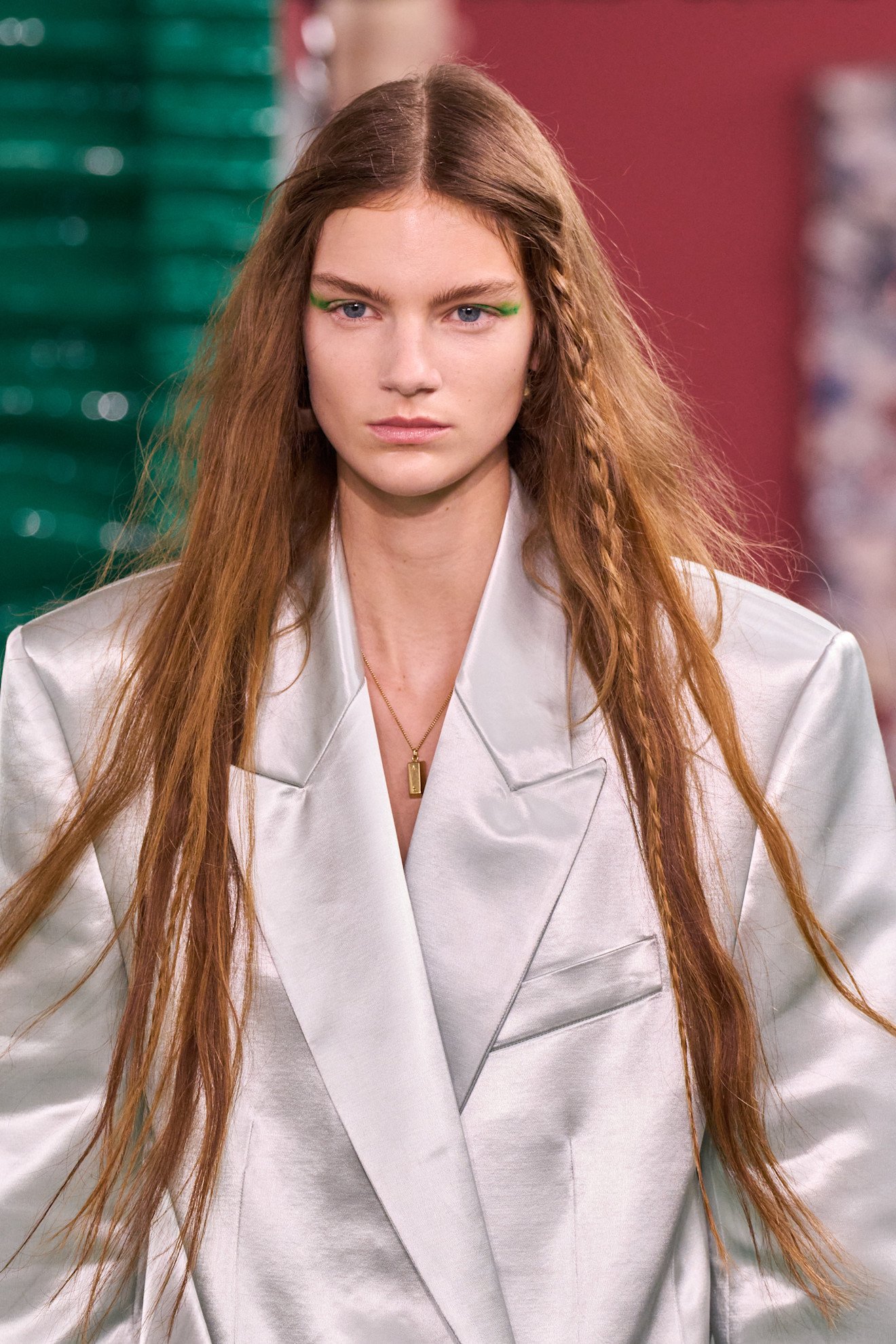 三つ編みを取り入れたブレイドヘアも、さりげなく存在感を放った。子どもの頃に親しんだ"おさげ"のイメージもあり、大人になるにつれて遠ざかりがちなスタイルだが、ハイファッションの文脈では意外なほど洗練された表情を見せる。