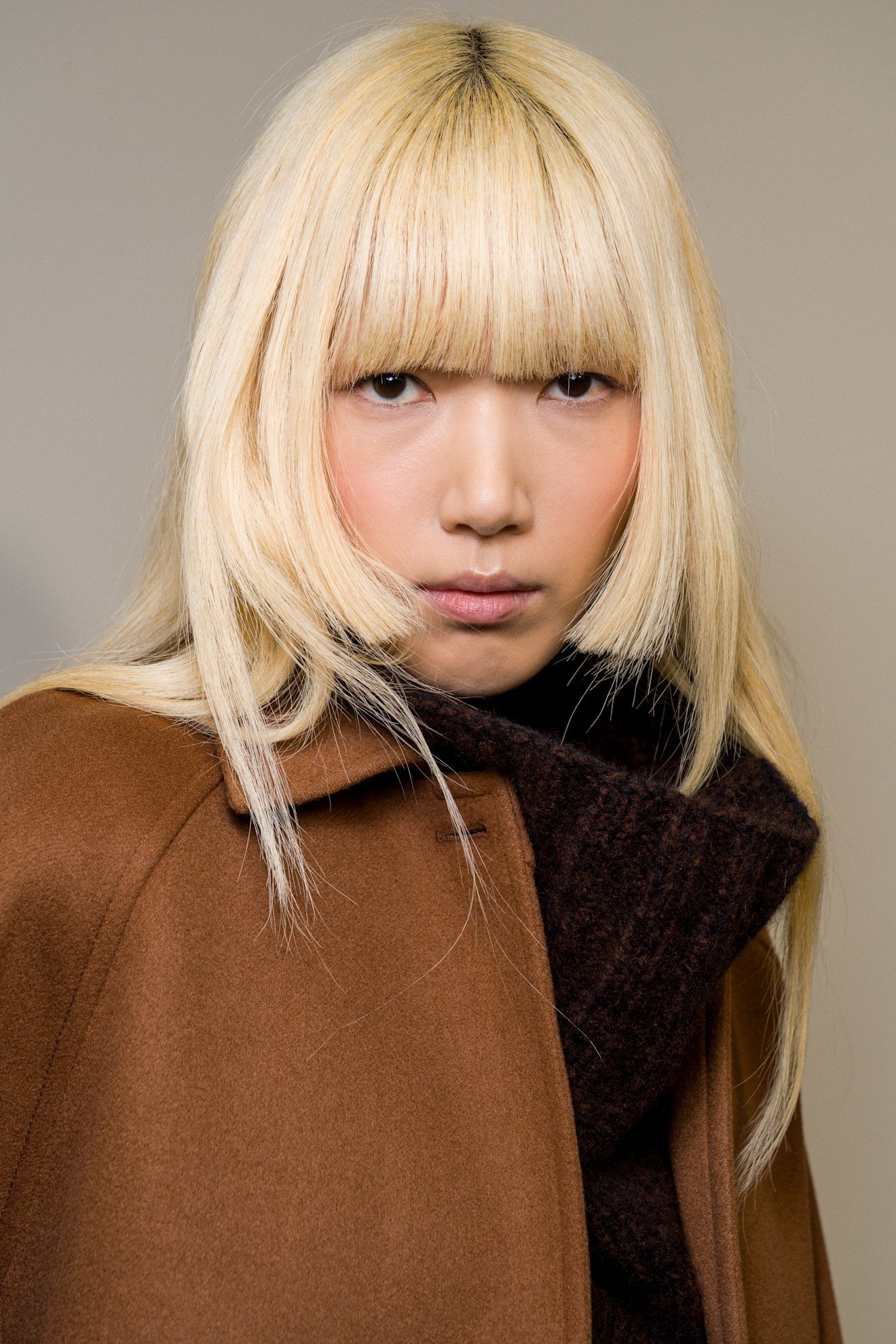 額に前髪をおろしたダウンバングのロングヘアも、印象的に登場した。特別に新しいスタイルというわけではないが、ランウェイモデルがさらりと取り入れることでどこか新鮮なムードをまとい、コレクションの中でも自然体の魅力を放っていた。顔まわりに柔らかなフレームを作ることで静かな存在感を生み出す。