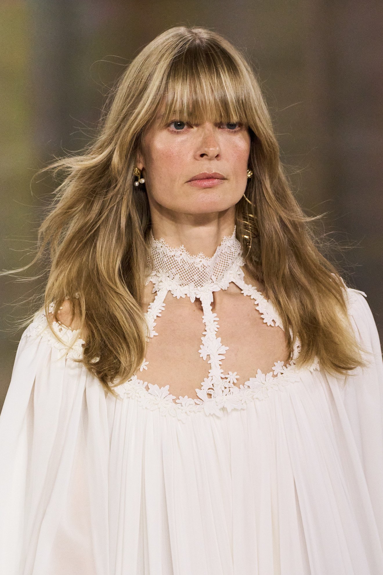 ランウェイでは、ストレートヘアにさりげなくニュアンスを加えるような感覚で取り入れられ、軽やかな空気感とフェミニンなムードを同時に表現。過度なボリュームや強いカールではなく、あくまでナチュラルな流れの中で動きを作るのがポイント。ナチュラル思考が続く今季のビューティトレンドを象徴するヘアスタイルとも言えよう。