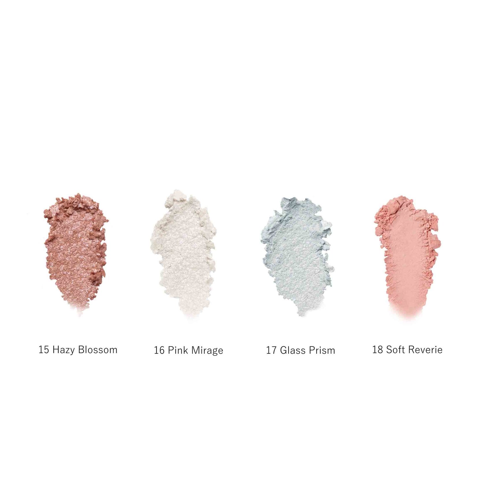 トーンの単色アイシャドウは、色調に合わせた処方で、まぶたをしっとりとしたうるおいで包みながら鮮やかに発色。新色は、ピンキッシュブラウン「15 Hazy Blossom」、オーロラピンク「16 Pink Mirage」、アイシーブルー「17 Glass Prism」、マットなヘイジーピンク「18 Soft Reverie」の4色が揃います。ブランド初のマットリップとの組み合わせも◎。