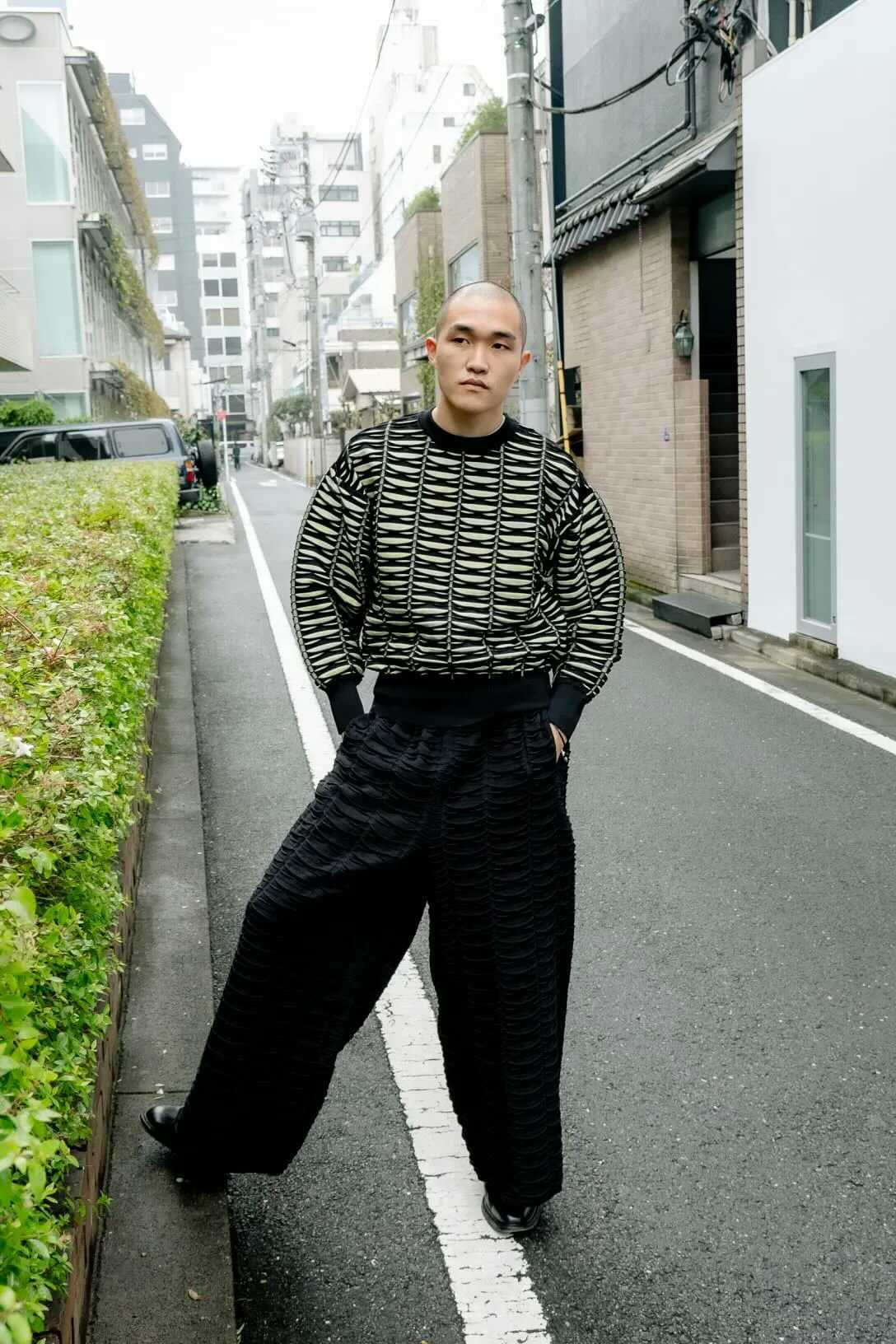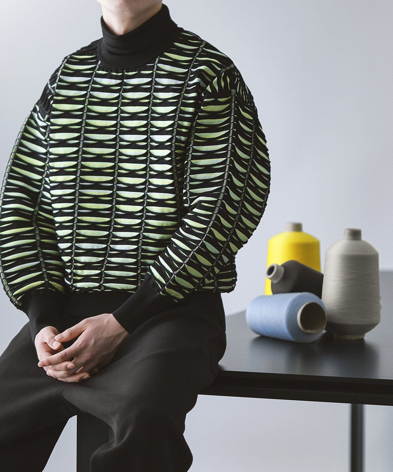1枚だけでインパクト抜群な「ハトラ」のニット。モノトーンカラーのボトムスをチョイスすれば綺麗にまとまるので、意外と手持ちのワードローブと合わせやすいです。暗めの色のアウターの下に忍ばせても存在感はバッチリ。コットン100%なので、秋・冬・春の3シーズンで着られるのも嬉しいポイント。寒い日はキレイめのシャツや異素材のタートルネックトップスなどを合わせても馴染みます。カラーは火山の中心に出来た円形の凹地を意味する「Caldera」と、氷河を意味する「Glacier」の2色をラインナップしています。