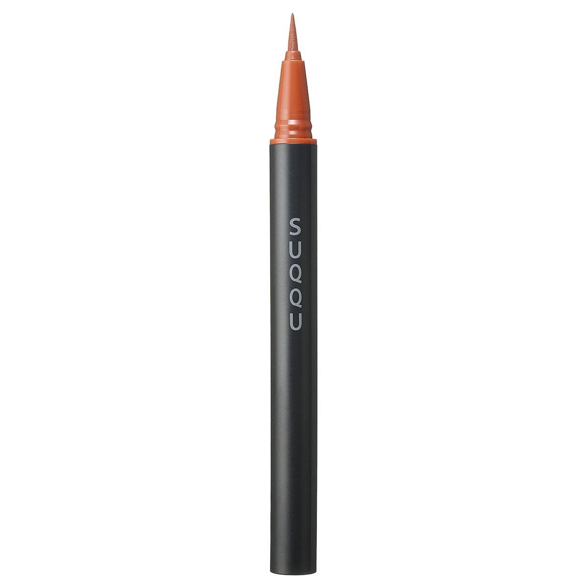 新作のリキッドアイライナー「ニュアンス アイライナー」はコシのあるフェルト筆で手元がブレにくく、細かなラインも自由自在に引くことができます。今シーズンは、淡いニュアンスカラーで抜け感のあるアイメイクに仕上げる4色を用意。墨黒のような「01 ブラック」、ベージュに近い柔らかな印象の「02 ブラウン」、クールな雰囲気のホワイトグレー「03 グレー」が発売後に定番のラインナップに加わり、春の朝をイメージした温かみのある「101 オレンジ」は数量限定カラーです。
