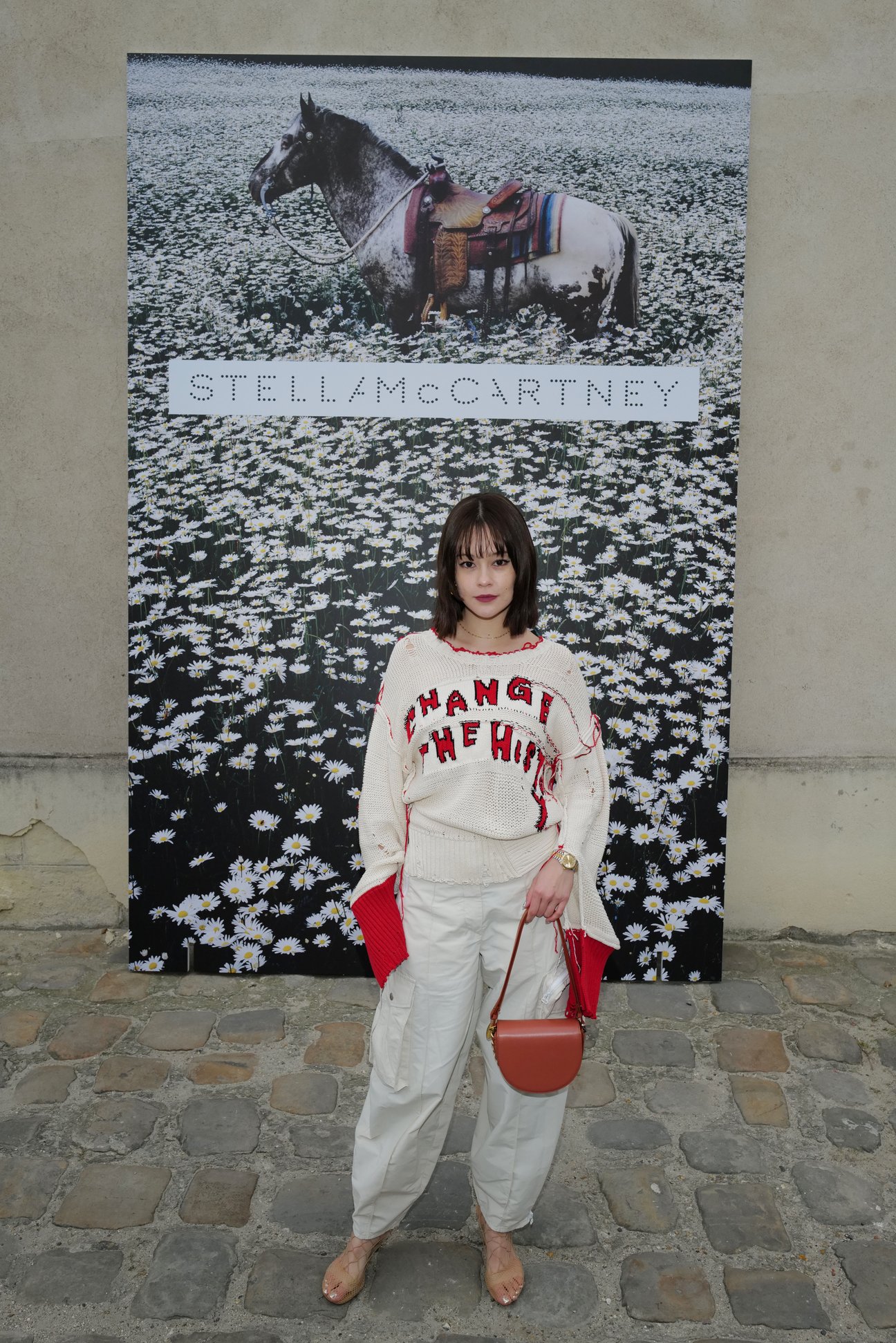 今回のテーマは「母、娘、姉妹、自然、人間、動物たちの間にある愛」。写真家・ミュージシャン・料理研究家として活躍した、ステラの母親である故リンダ・マッカートニー(Linda McCartney)、そして写真家である姉のメアリー・マッカートニー(Mary McCartney)の作品も着想源に。リンダの作品はミニマルなスリップドレスにあしらわれ、メアリーの作品はフォトジャカードのポロシャツを彩った。コレクションノートの冒頭には「できることなら、馬に乗って旅をしたい」というリンダの言葉が引用されていた。