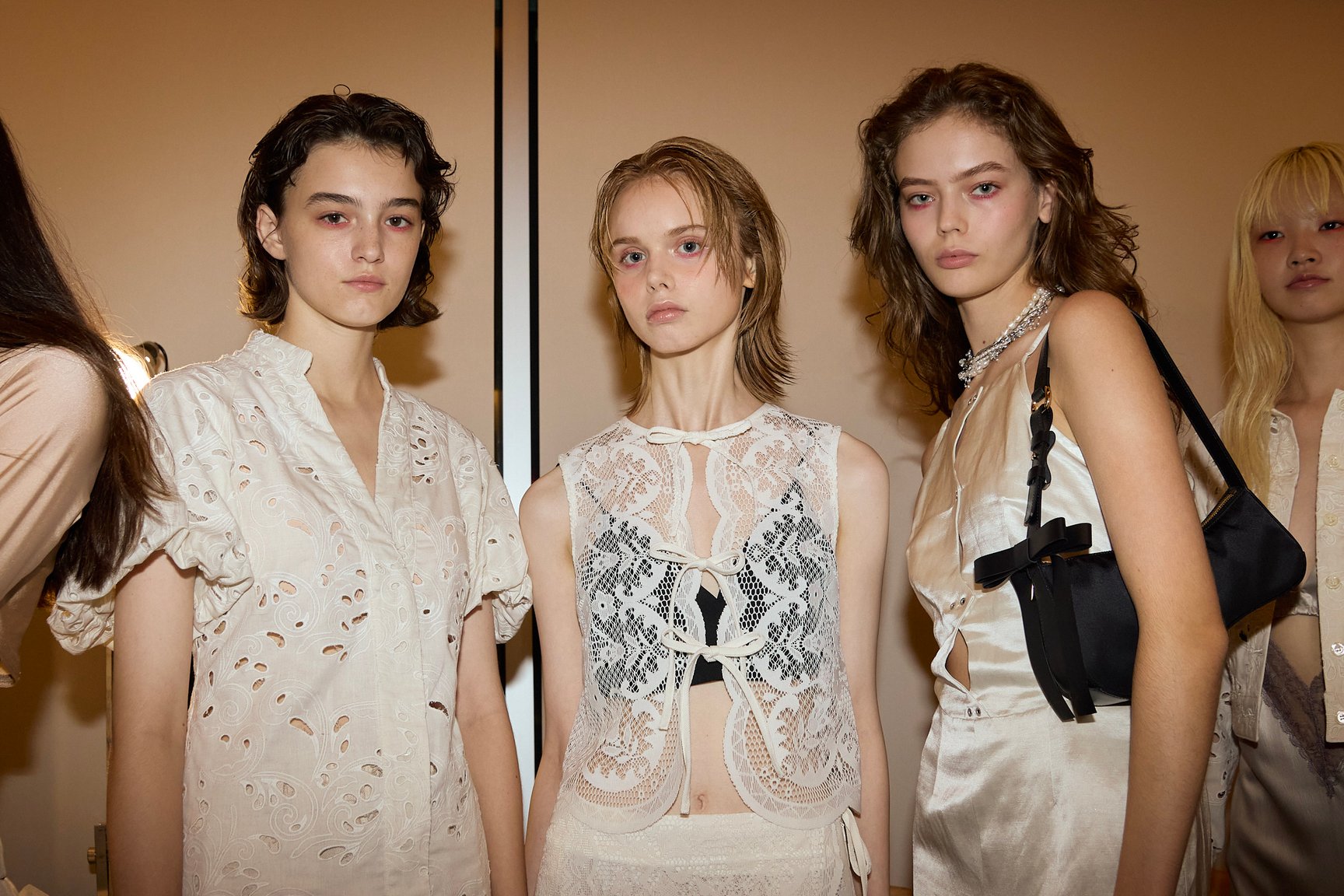 基本のテーマに沿ってリラクシーにしたかったので、モデルたちの“素の髪”を活かしながらかなりラフな仕上げに。今回豊富だったニットやレース、シアー素材のアイテムやそこから透けた肌が映えるよう「髪が主役にならないように」という意味もあります。