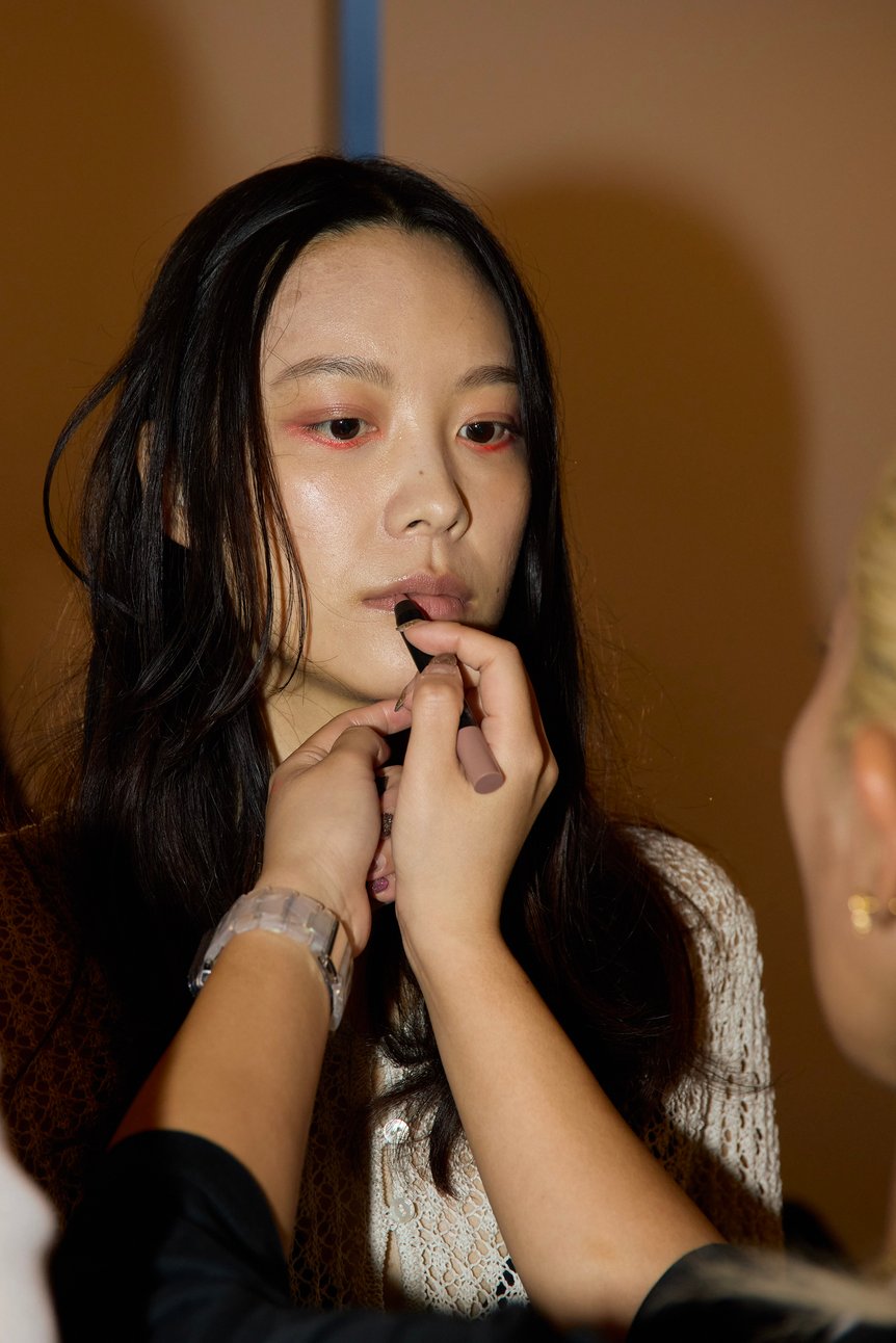 コレクションの着想源が映画「胸騒ぎのシチリア」だと聞いたので、リゾート地であるシチリア島を思い浮かべ、“リラックス”を基本的なイメージにしました。映画のレトロな雰囲気を活かしつつ、今回のコレクションに落とし込まれた“愛憎の渦や交錯する感情の移ろい”といった、内面の複雑性をメイクでも表現しています。