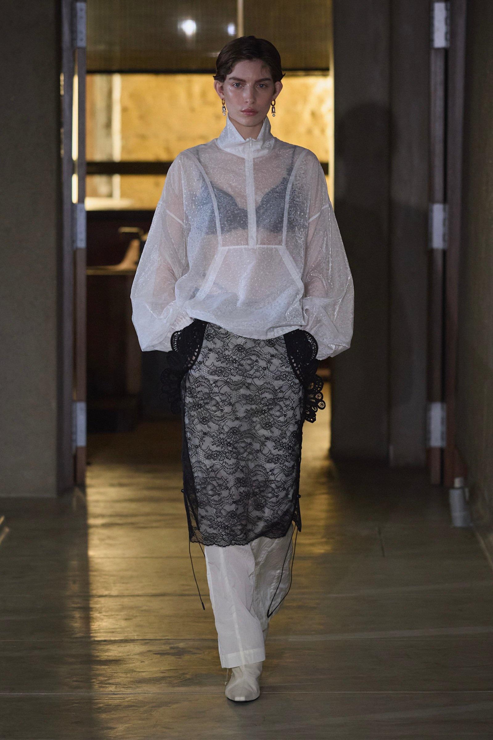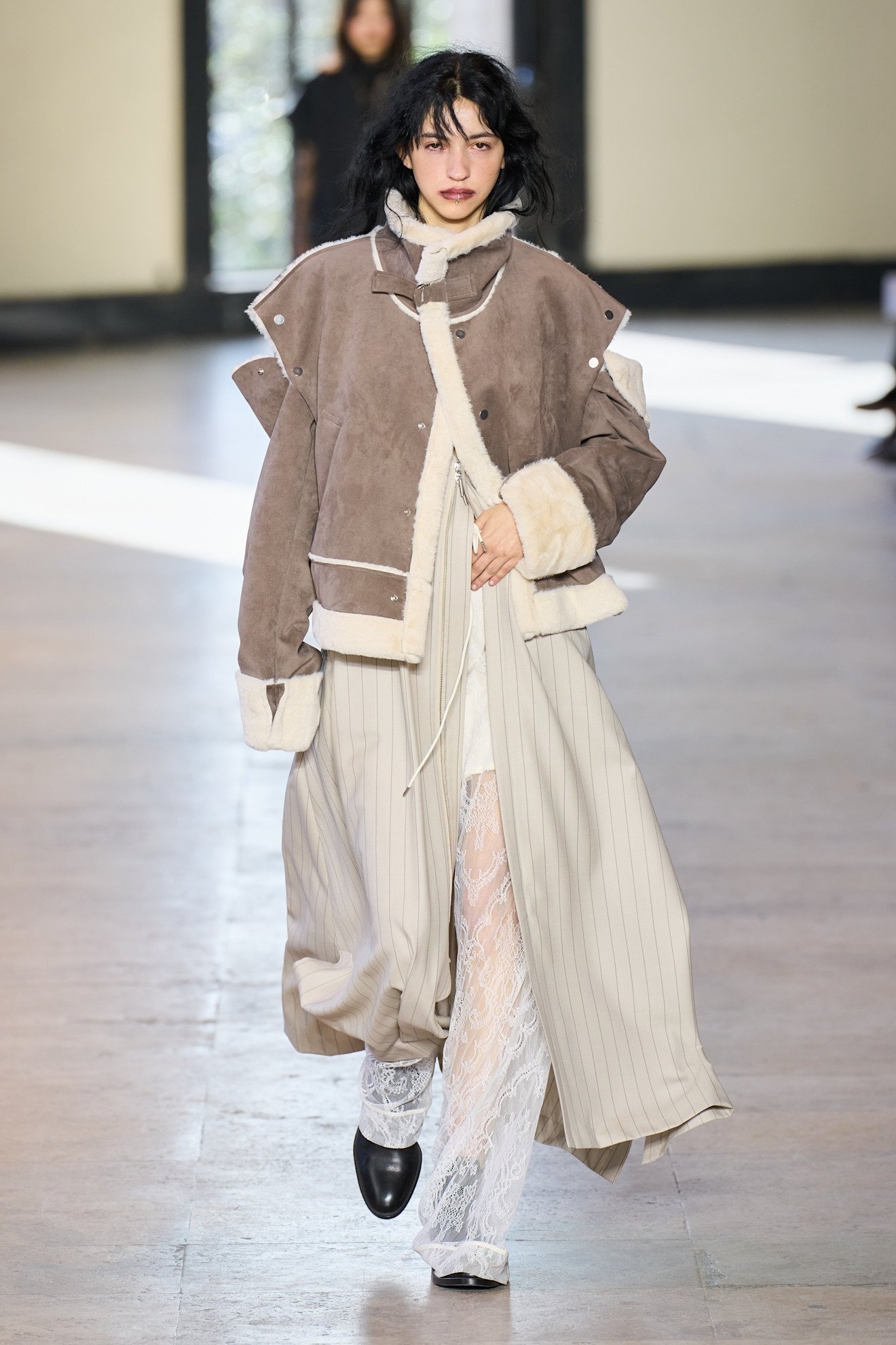 長年使用した「時間の堆積」や「愛着」を感じさせるギミックとして、シワ加工を施したマテリアルも注目。ディオールや「プラダ(PRADA)」「ディーゼル(DIESEL)」などで登場しており、ディーゼルのデニムジャケットのリアルなシワは樹脂で固定することでユーズド感を強調。グレン・マーティンス(Glenn Martens)が、「パーティの後に床で寝落ちした時のシワ」と表現するように、そこには「完璧ではない日常への愛おしさを込めた眼差し」が落とし込まれている。