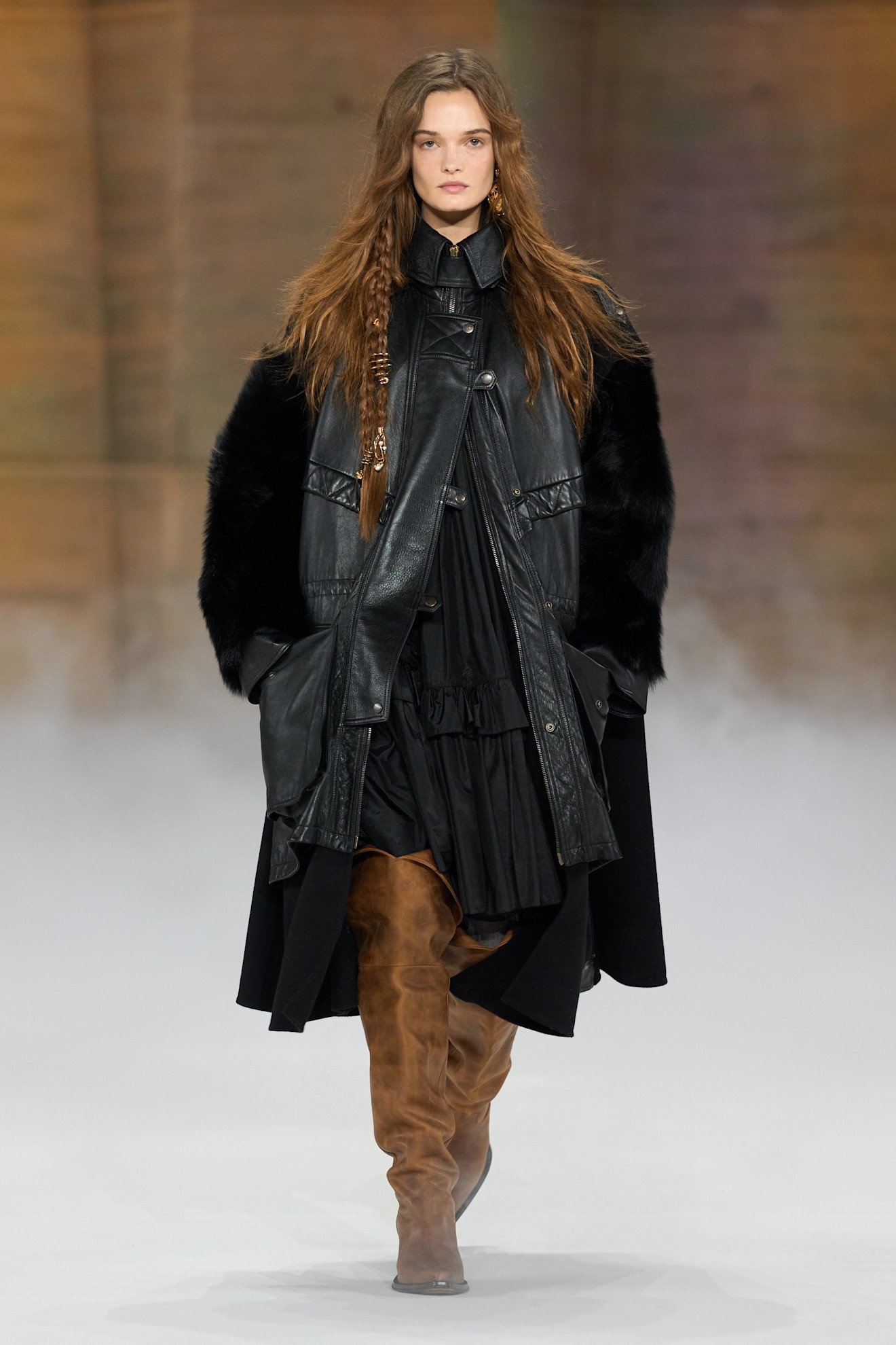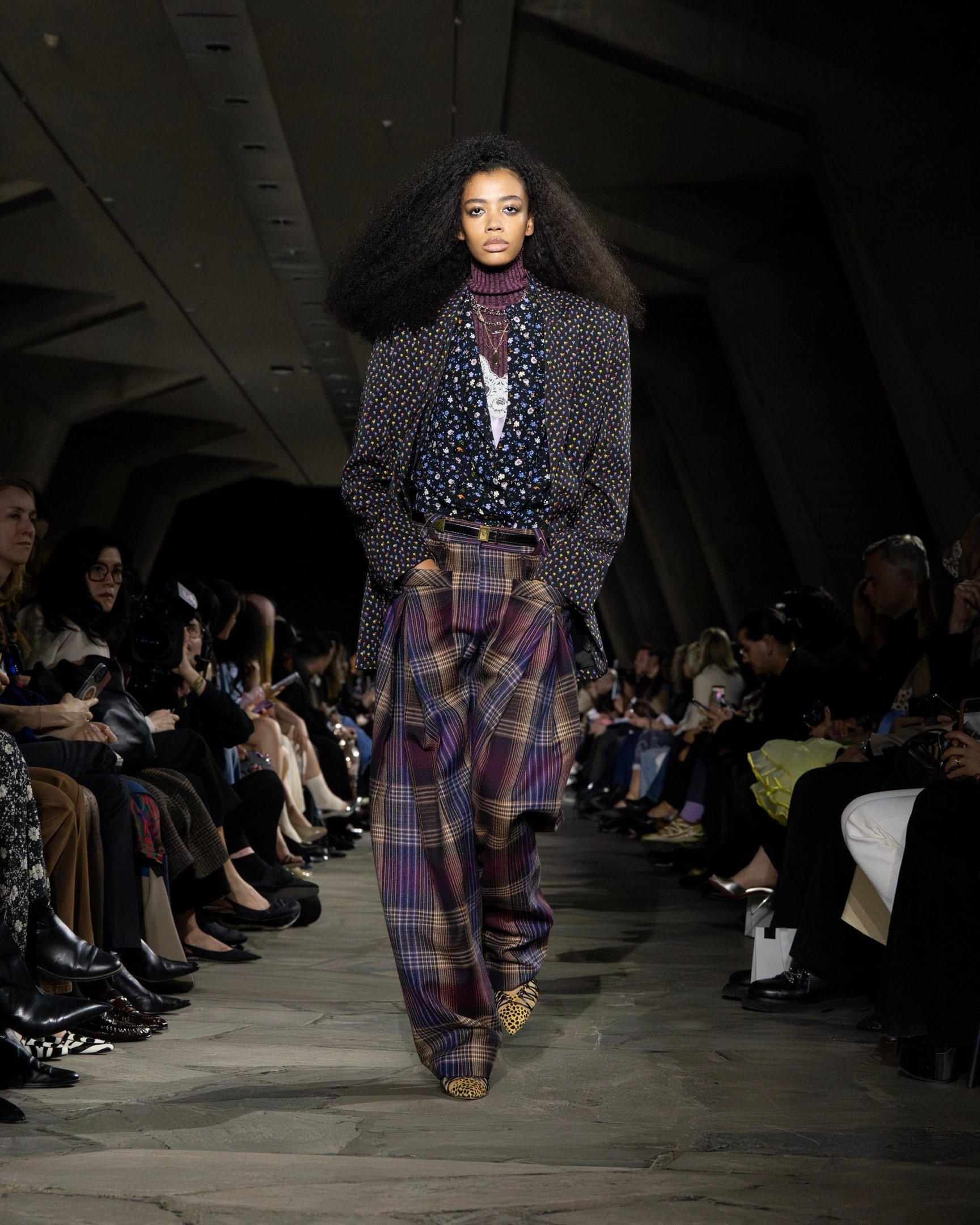 秋冬の定番柄であるチェックは、トラディショナルからプレイフルまで多彩なバリエーションにアップデート。グレンチェック、ハウンドトゥース、タータンチェック、オンブレチェック、ブラックウォッチと種類が豊富で、「クロエ(Chloe)」のようなカラフルな配色にも注目したい。アウターやドレスに加えセットアップでの提案も多く、今季らしいひねりを加えたチェックを主役にしたコーディネートが目を引いた。