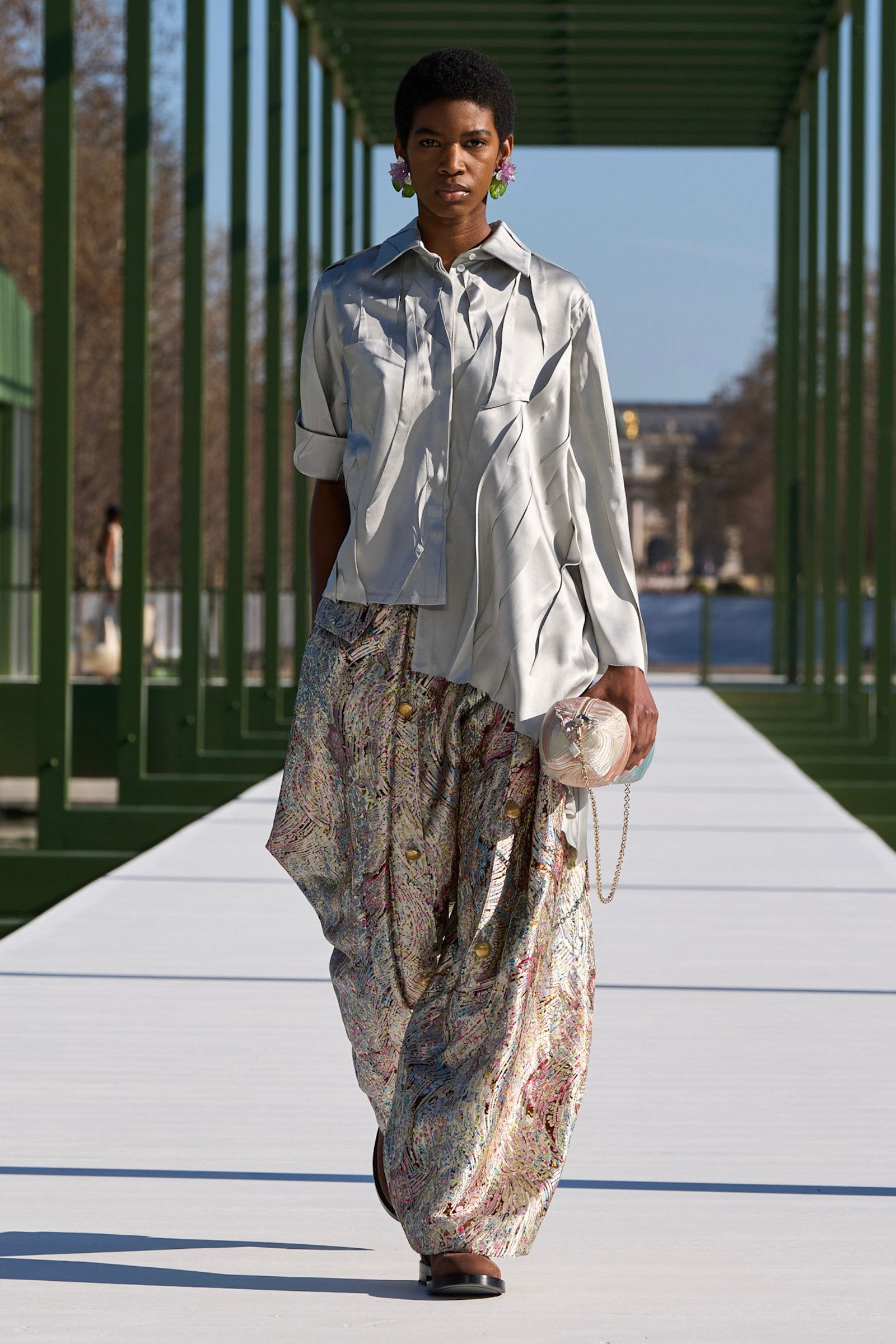花柄は、柔らかなシフォン素材やドレッシーなサテンといった多様なマテリアルで、例年以上に新鮮に映った。ゴージャスな刺繍、繊細なビジューなど、職人技と融合し、エレガントで生き生きとしたフラワーパターンが特徴的だった。