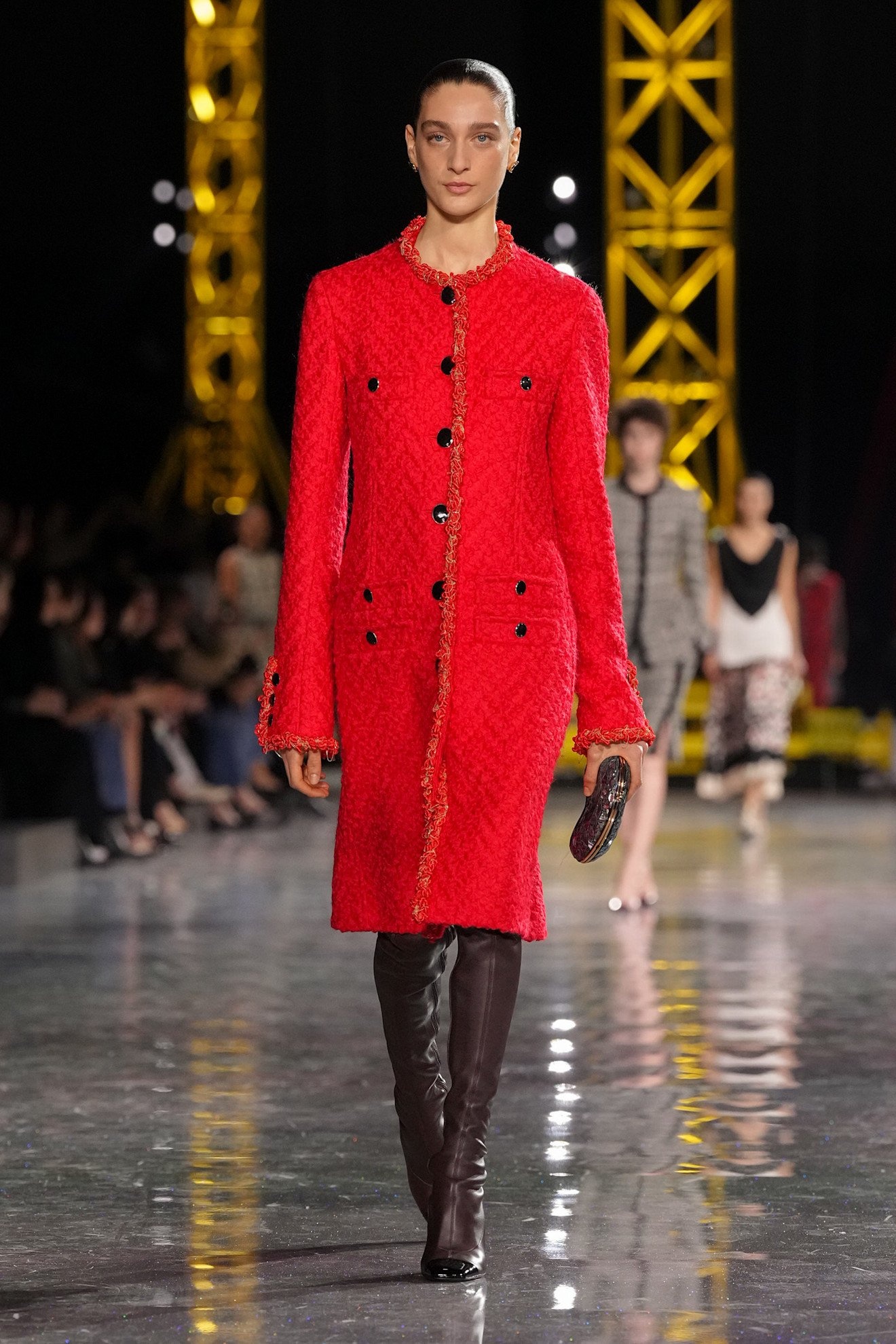 ここ数年、秋冬シーズンのアクセントとして登場していたレッドの存在感がさらに増している。「トム フォード(TOM FORD)」や「ランバン(LANVIN)」、シャネル、バレンシアガのように、ウールコートやジャケットスタイルに大胆に用いて、装いからエネルギーを感じさせる色使いは今季ならでは。また、ボッテガ・ヴェネタのテクニカルファイバーを用いたシャギーなコートや、「ドリス ヴァン ノッテン(DRIES VAN NOTEN)」のプリーツの一部にフラワープリントを取り入れたドレスのように、「動き」を取り入れたデザインも目を引いた。