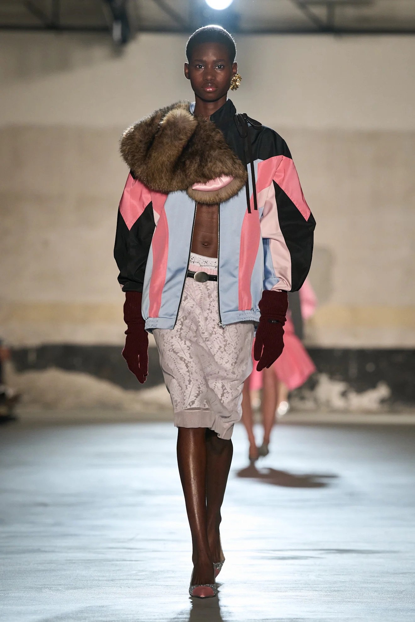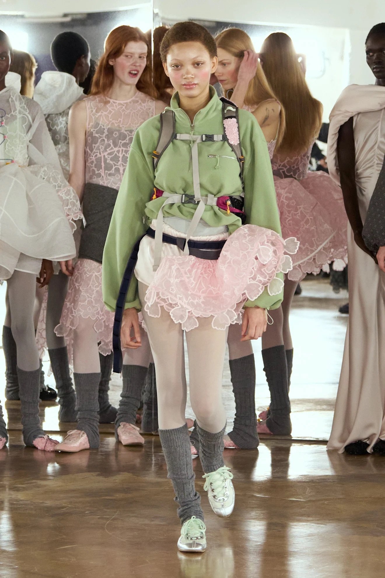 ・阪急阪神百貨店 (売り場)バイヤー 源野里沙子:セシリー バンセンのペールグリーン×ピンクの色合わせ、フリース×マトラッセの異素材ミックス。「シモーン・ロシャ(Simone Rocha)」の甘さ×ワークテーストの融合。