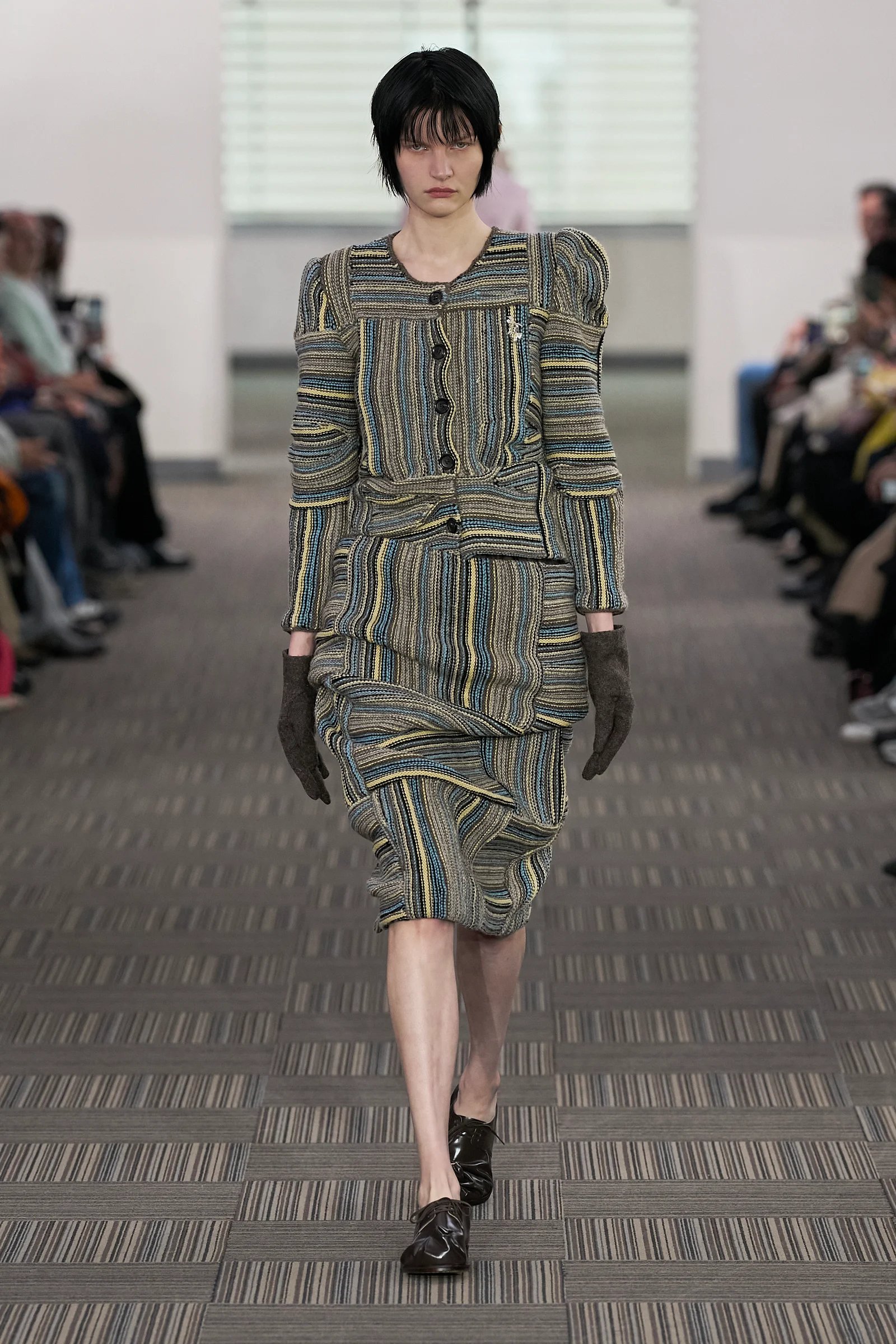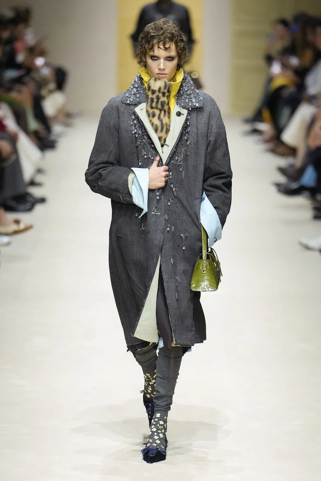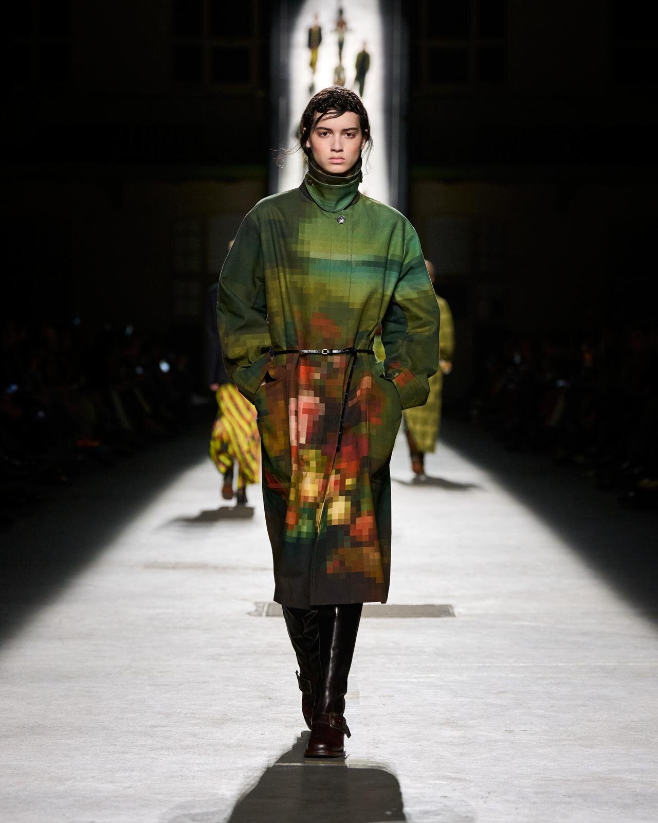 ・バーニーズ ニューヨーク ウィメンズバイヤー 宮嶋泰子:ドリス ヴァン ノッテン——デザイナーの高校時代を着想源としたコレクションで、モザイクのような花柄が徐々に繊細なフラワーモチーフへと変化していく過程が、自身の成長と重ねて表現されている点がとても魅力的でした。感情的なストーリーと完成度の高いクリエイションがバランスよく融合しており、ブランドの新たなフェーズを感じました。