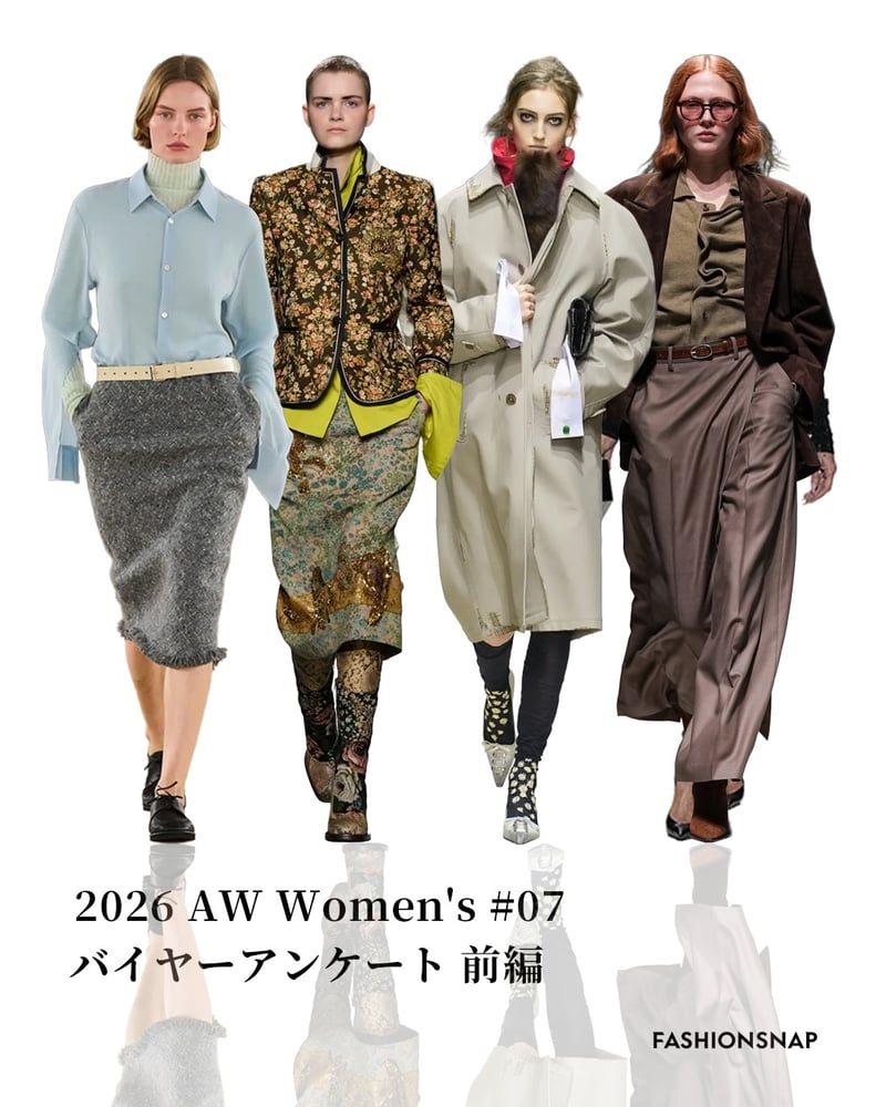2026年秋冬シーズン(プレフォール含む)、バイヤーの注目を集めたブランドは? FASHIONSNAPではメンズに続き、国内有力ショップのウィメンズバイヤーにアンケートを実施。印象に残ったブランドから、買い付け予定のアイテムまで調査し、前後編に分けて紹介する。前編は、気になったトレンドトピックやスタイル、良かったブランドや期待のニューカマーについて聞いた。