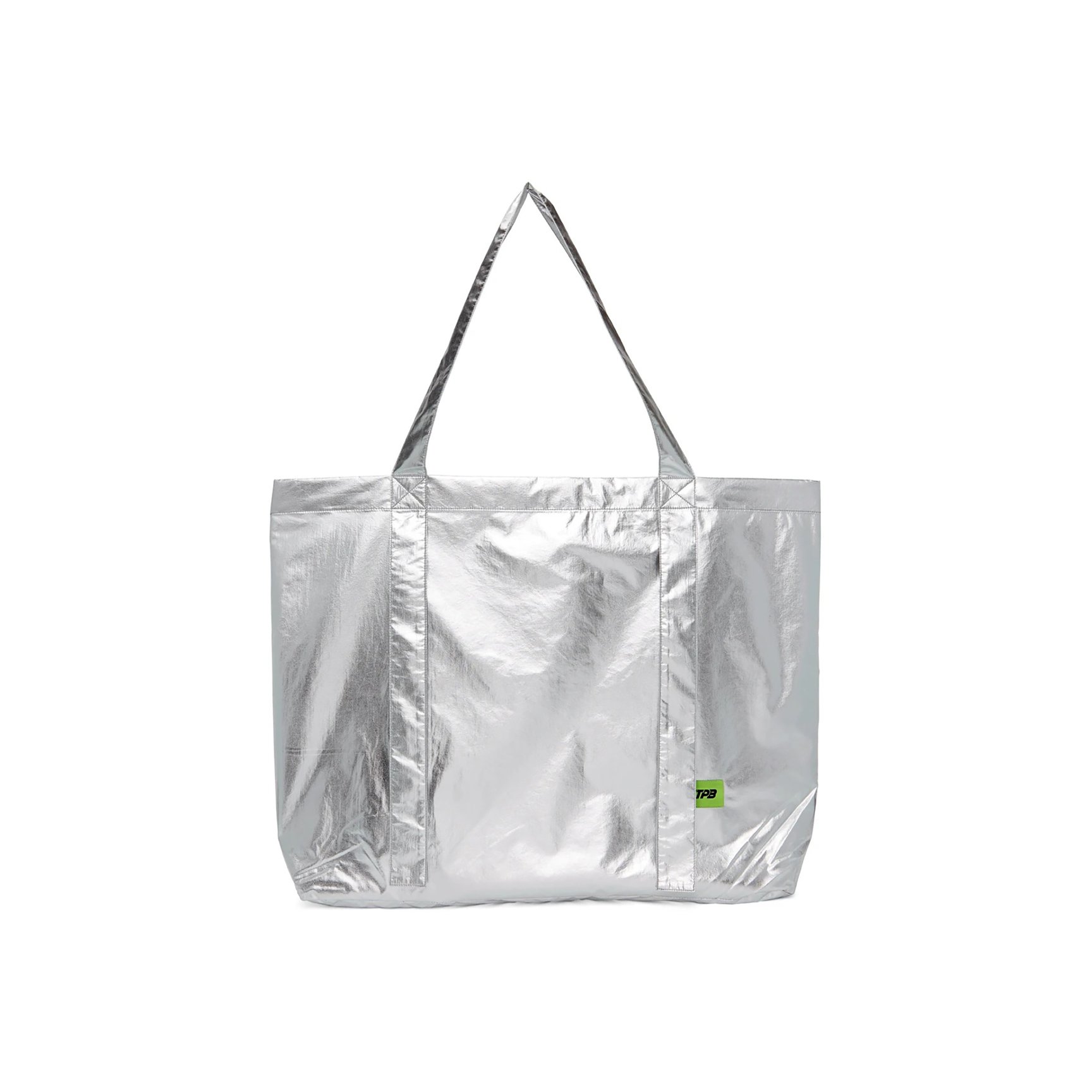 あらゆるスタイリングに不思議とフィットしてしまうのが、メタリックシルバーのポイント。「プッシュボタン(pushBUTTON)」のトートバッグは、シンプルなトートバッグをフューチャリスティックな印象でクラスアップ。