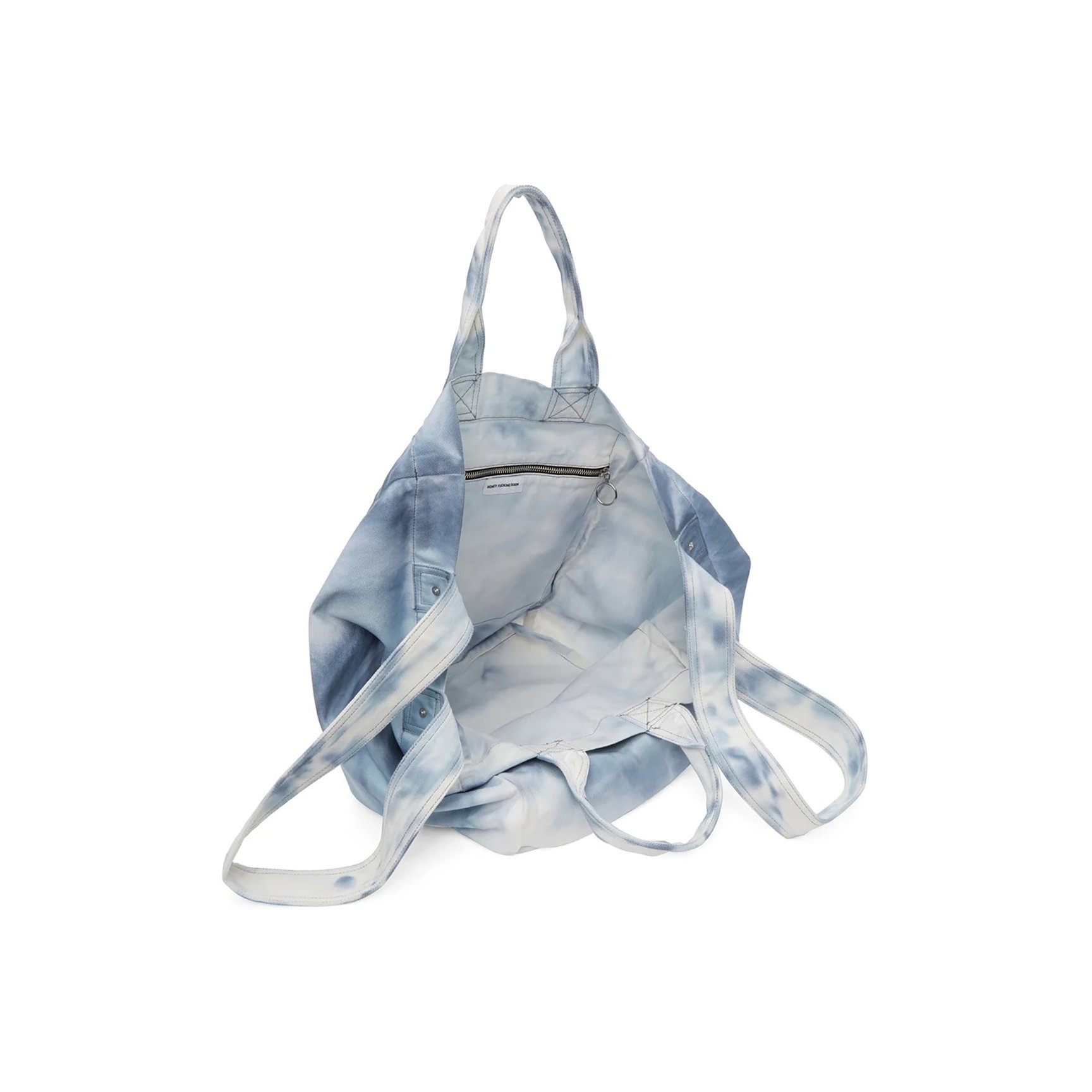 「ハニー ファッキング ディジョン(Honey Fucking Dijon)」のトートバッグは色あせたタイダイ染めが、ヴィンテージデニムのような生地の風合いを一層引き立てて、程よい力の抜け具合がいい感じ。手持ち&肩掛け、2種類のハンドルが付属しています。持ち方によって、ゆったりとしたバッグ自体のフォルムの変化を楽しめます。