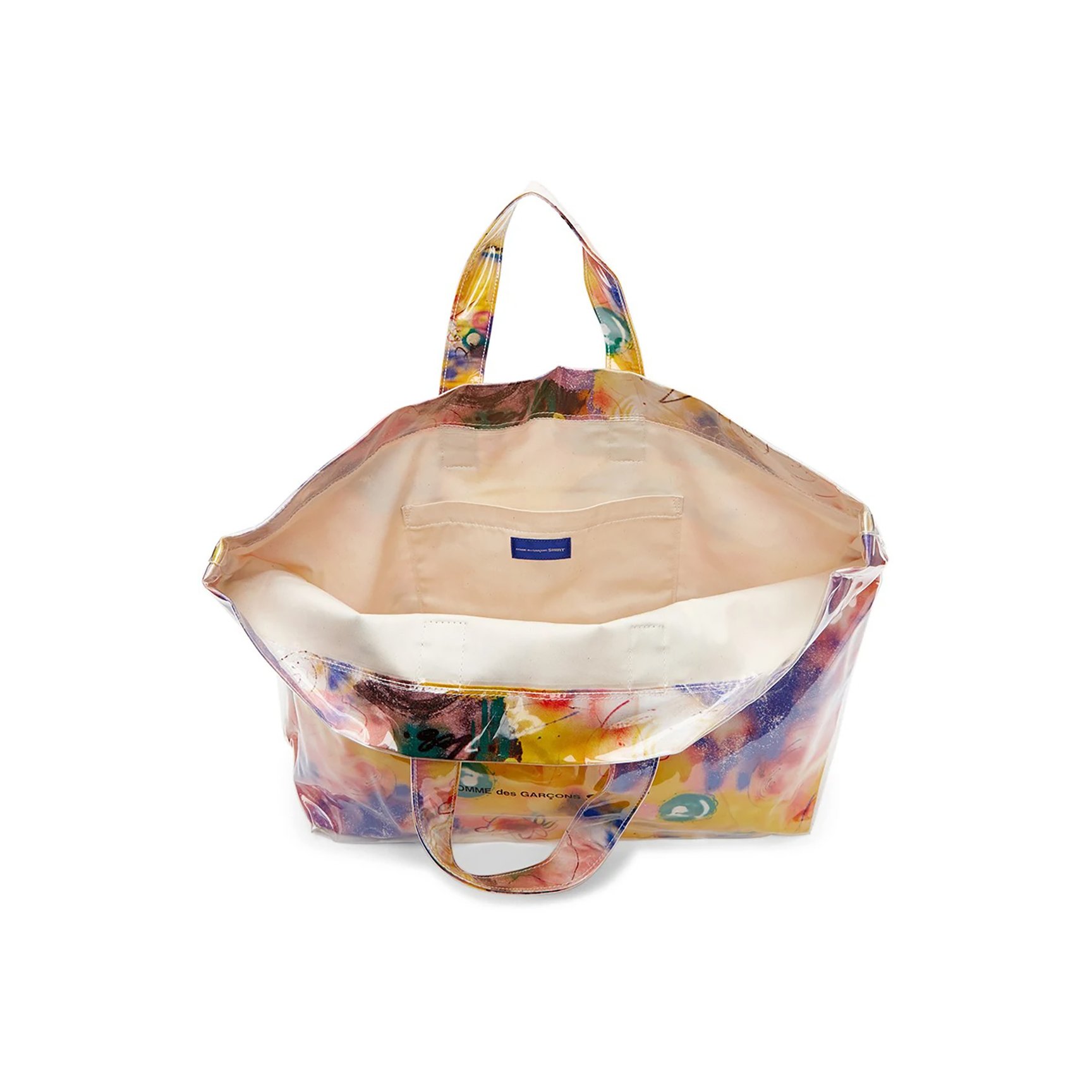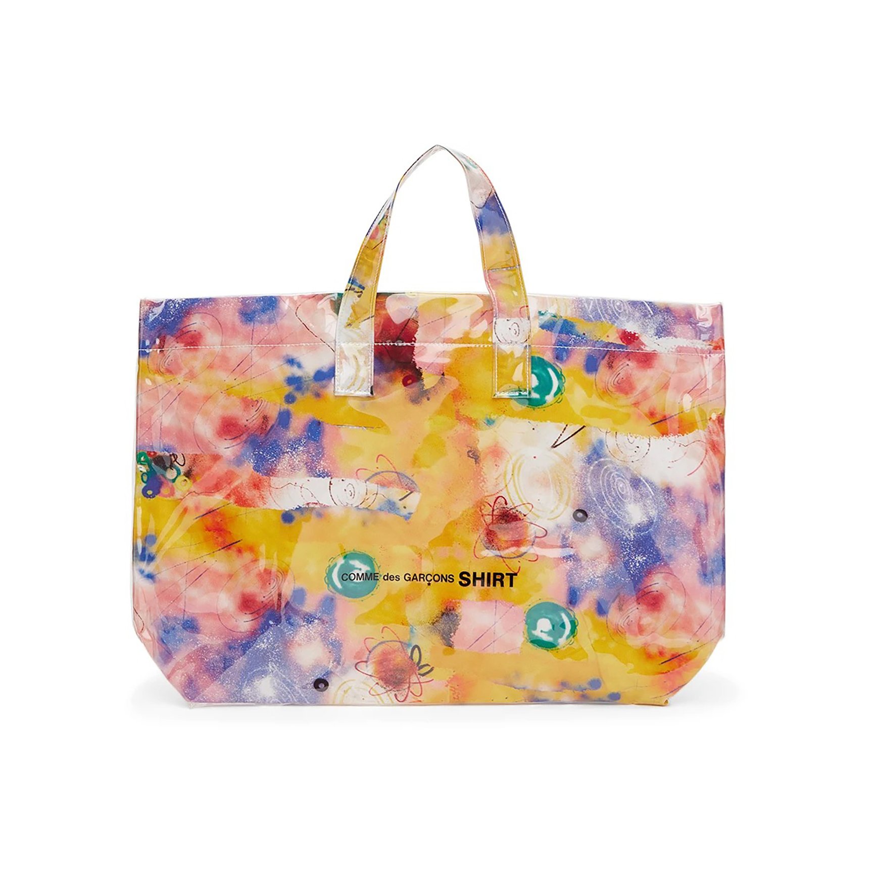 巨匠・フューチュラ(FUTURA)の絵筆による鮮やかなグラフィックを全面にあしらった「コム デ ギャルソン・シャツ(COMME des GARÇONS SHIRT)」のトートバッグ。トランスペアレントなオーバーレイヤーをまとった2層構造によって、未来的な雰囲気に仕上がっています。