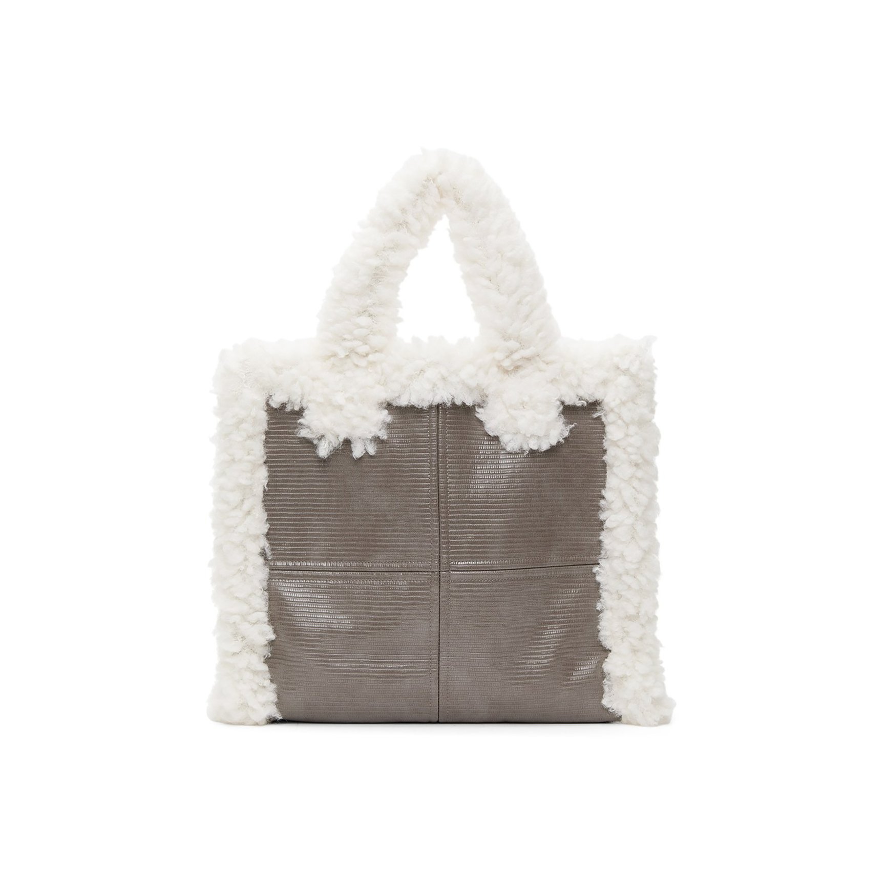 エコファー系アイテムがそろうコペンハーゲン発の「スタンド スタジオ(STAND STUDIO)」。デザインのバリエーションも豊富なシグネチャーの「Lolita」トートから、アルマジロ型押しのフェイクレザーがユニークなこちらをチョイス。縁を飾るシアリングのもこもこ感とのギャップがたまらなくキュート!また、ボリューム感のある見た目に反してかなり軽量なんです。