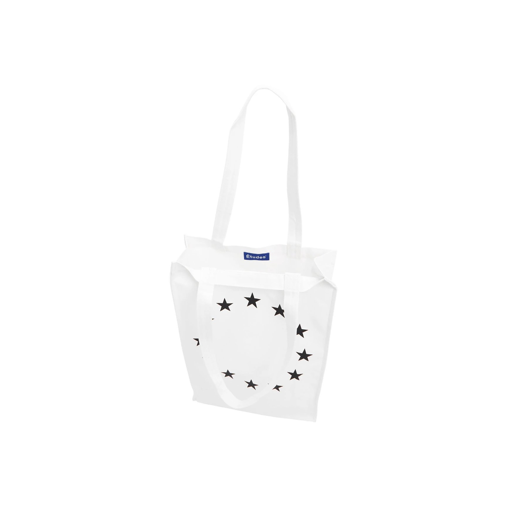 まさにシンプル・イズ・ベスト。ブラックスターのサークルプリントが際立つ、「エチュード(Études)」のプレーンなコットン製のバッグです。どんな服装にもさり気なく似合わせられそう。折りたたんで持ち歩けば、急に荷物が増えても安心です。厚みのあるPCや書類にも対応OKな、マチのしっかりあるボックスシェイプも嬉しいですね。