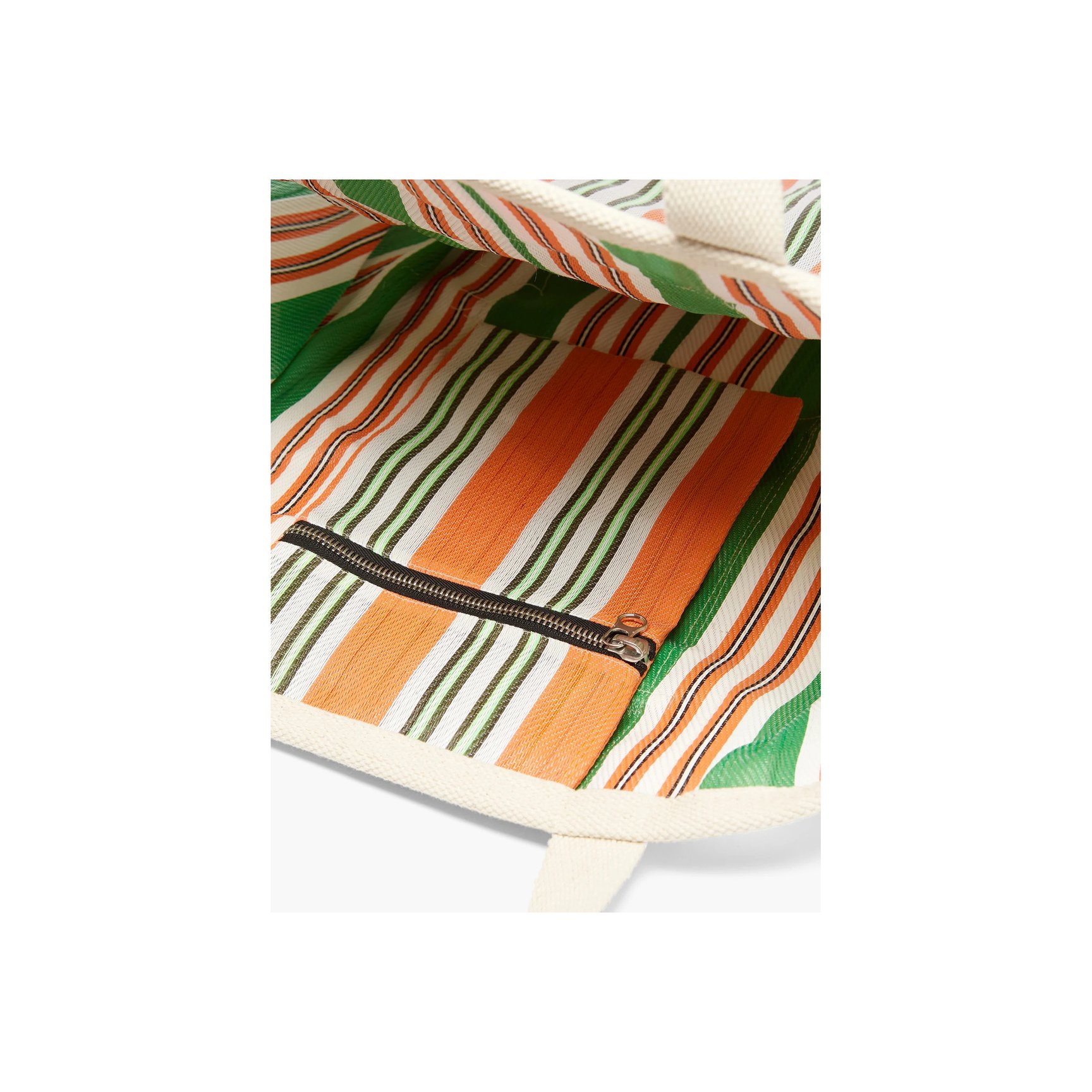 あたたかくなるこれからの季節に合わせたいのが、チアフルな色づかいのアイテム。「イザベル マラン(ISABEL MARANT)」のマルチカラーストライプのトートバッグは、キャンバスのざっくりとした素材感とも相まってカジュアルで自由なムードがいっぱい。ざくざくモノを入れられるオープントップのデザインは、旅行やお買いモノなどさまざまな場面で活躍間違いなし。
