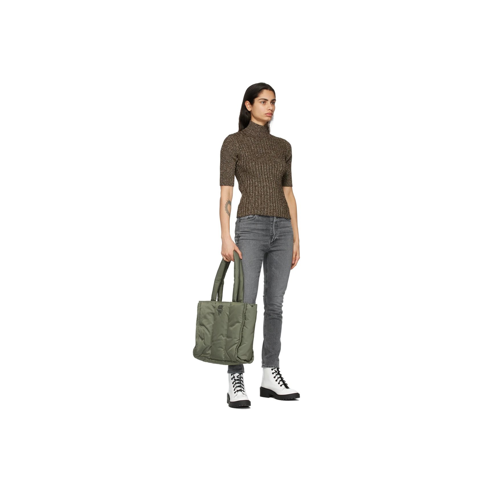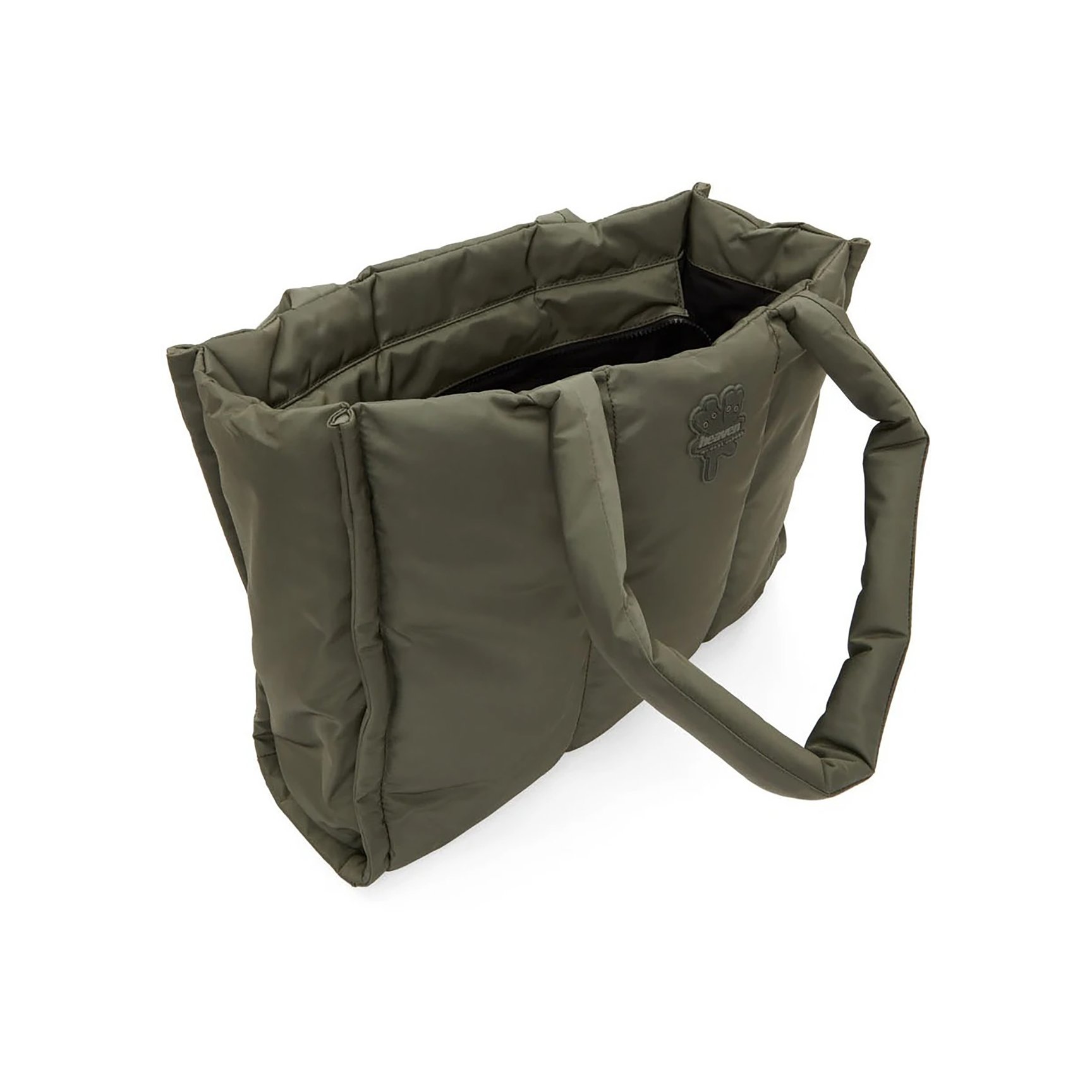 「マーク ジェイコブス(MARC JACOBS)」の新ライン「ヘブン バイ マーク ジェイコブス(Heaven by Marc Jacobs)」のトートバッグは、まるでダウンジャケットのようなもこっとした風合いが特徴です。長めのハンドルで、肩掛けスタイルもしっかり決まります。