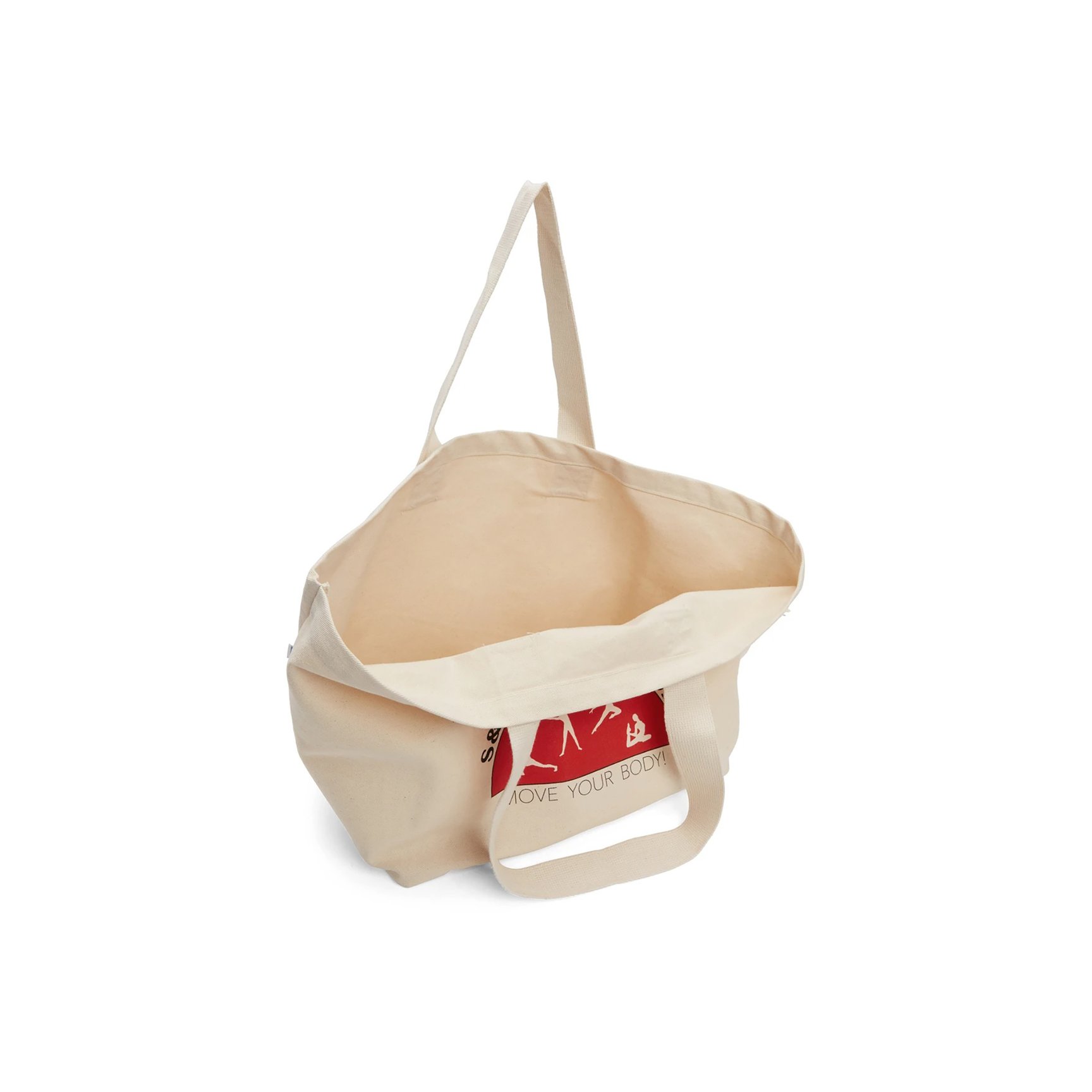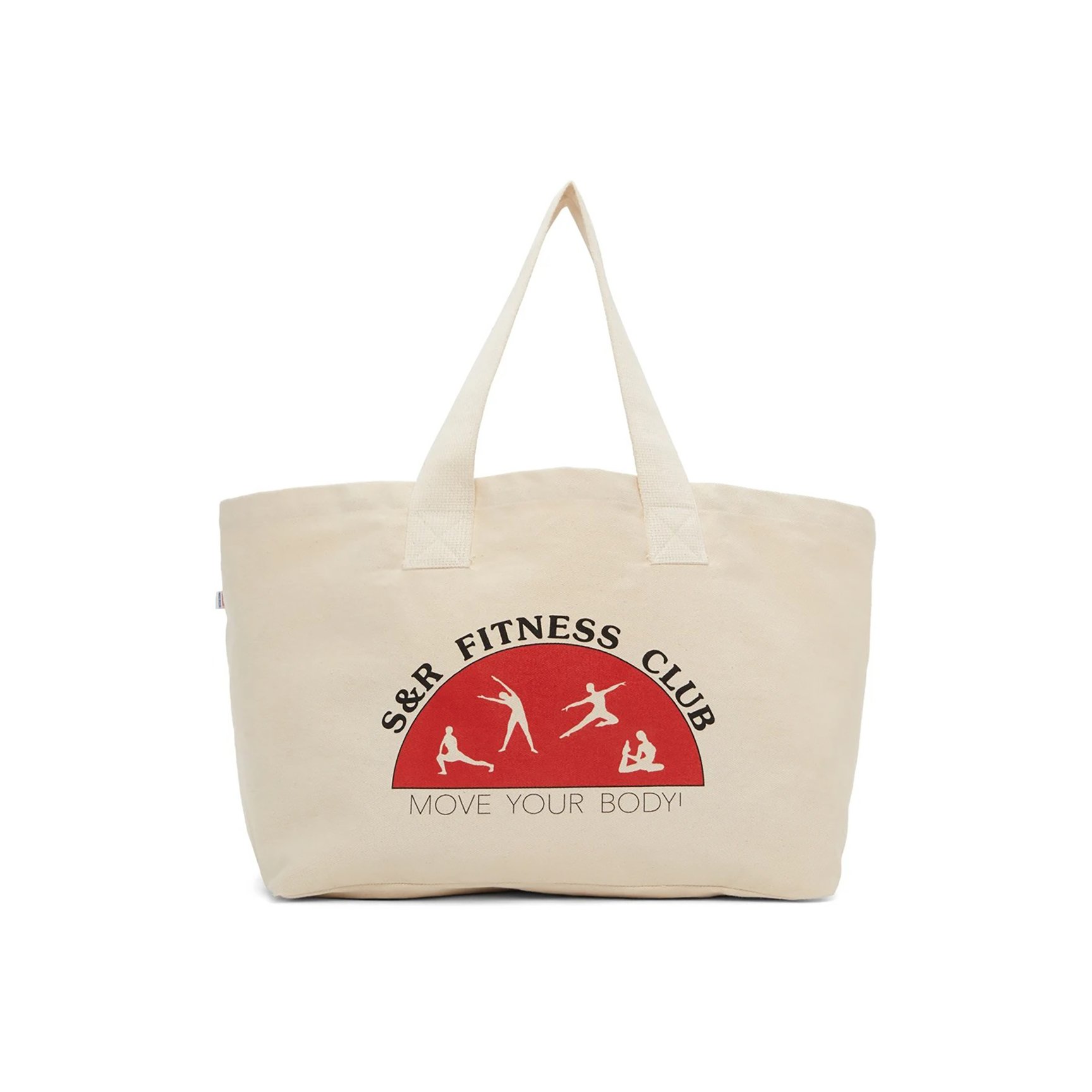 「スポーティー & リッチ(Sporty & Rich)」のキャンバス素材のトートバッグは、たっぷりのアイテムをINできる頼もしい収納力としっかりとした素材感が魅力。脱力系にフィットネスを描いたイラストも相まって、何かと荷物がかさばるジムバッグにもぴったり?!