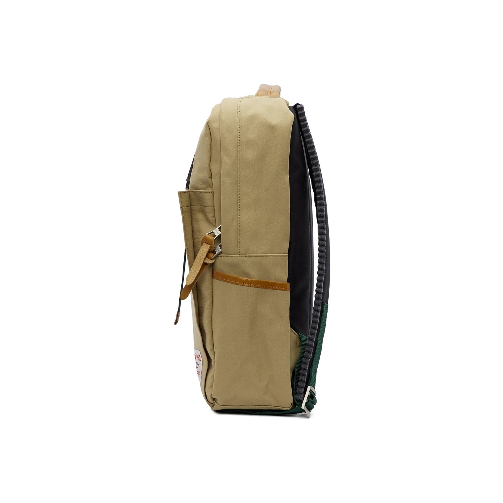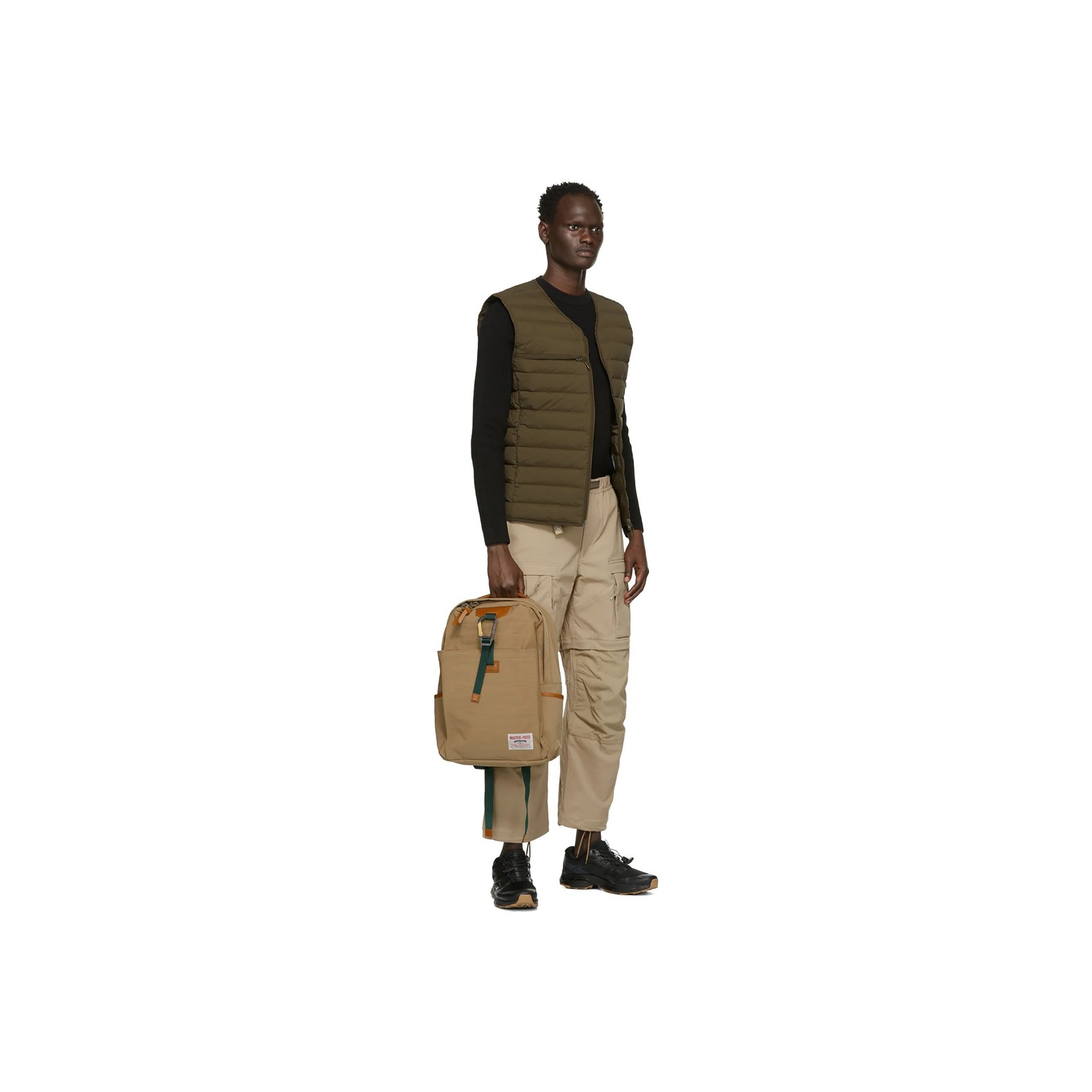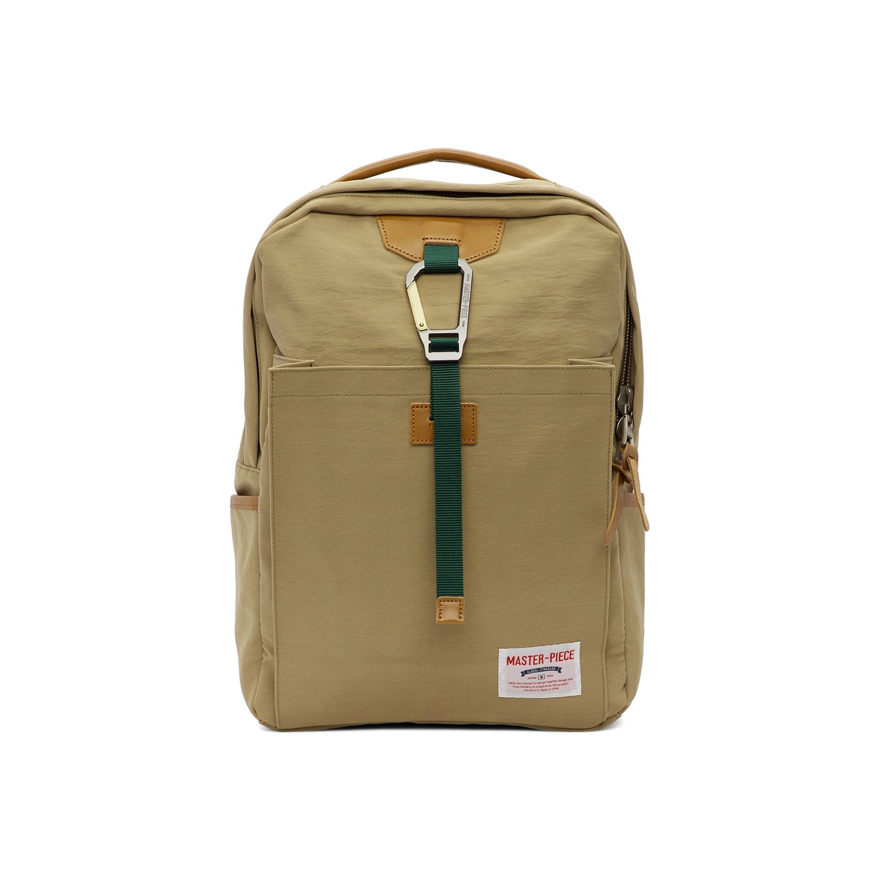 フロントのカラビナとベルトがアクセントになった「マスターピース(master-piece)」のベージュのバックパック。アウトドア感のあるディテールと、スリムなデザインのバランスが絶妙。ショルダーストラップのフェルトトリムなど、細かい部分まで抜かりない仕上がりとなっています。大人カジュアルなスタイルに合わせたいアイテムです。