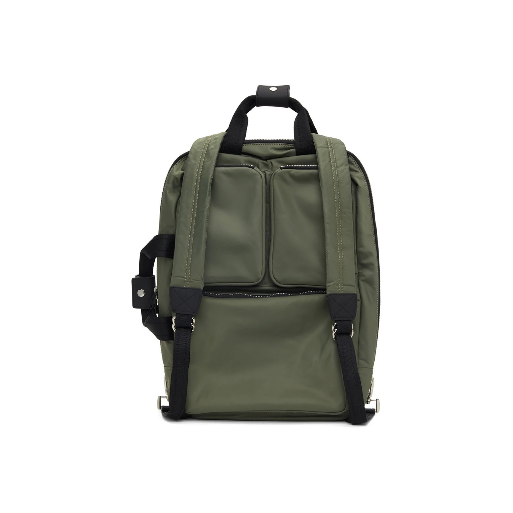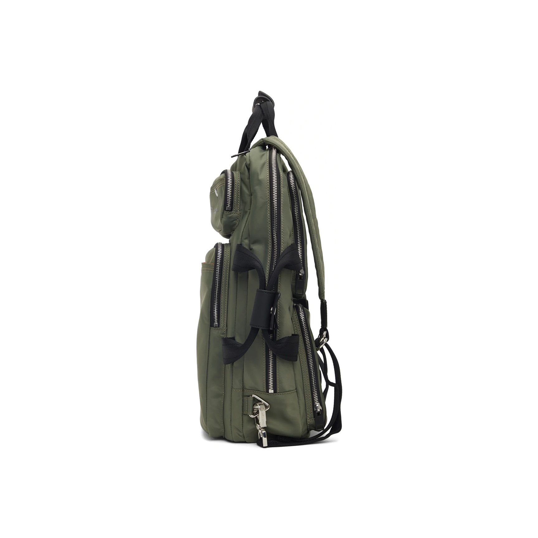 タテでもヨコでも使える「ディーゼル(DIESEL)」のカーキのバックパック。外側だけでなく、内側にもたくさんのポケットが配されたデザインは、収納力も抜群。インサイドに配された鮮やかなオレンジとの配色の対比も楽しめます。