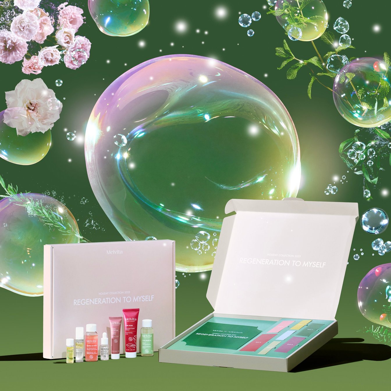 メルヴィータは、オーガニックハーブ専門店「ネロリハーブ(NeRoLi herb)」とコラボレーション。「自然の再生力」を軸に、メルヴィータのアイテムを体感できる7日間のアドベントカレンダーには、ブレンドハーブティー「めぐりブレンド」がセットになっています。めぐりブレンドとも相性の良いスキンケアで、充実したホリデーに。