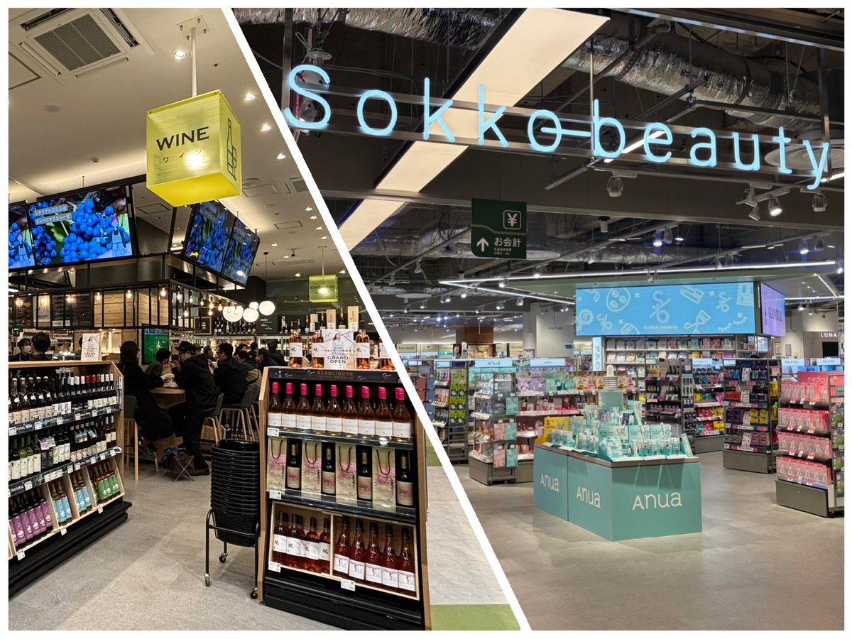 京成線コンコースにつながるサウス館の顔である2階は、ビューティ売り場です。“デパコス”(百貨店化粧品ブランド)から“ドラバラ”(ドラッグ&バラエティショップ)系プチプラコスメ、さらにオーガニックコスメまで、幅広い品揃えはインパクトあり。デパコスは、イオンが手掛ける編集売り場「コスメーム(Cosmeme)」の中で、「ディオール(DIOR)」「シュウ ウエムラ(shu uemura)」「ナーズ(NARS)」などを展開。イオン自ら手掛けるZ世代向け化粧品「ソッコービューティー(Sokko beauty)」には、カラフルなフェイスパックや韓国系コスメがズラリと並びます。
