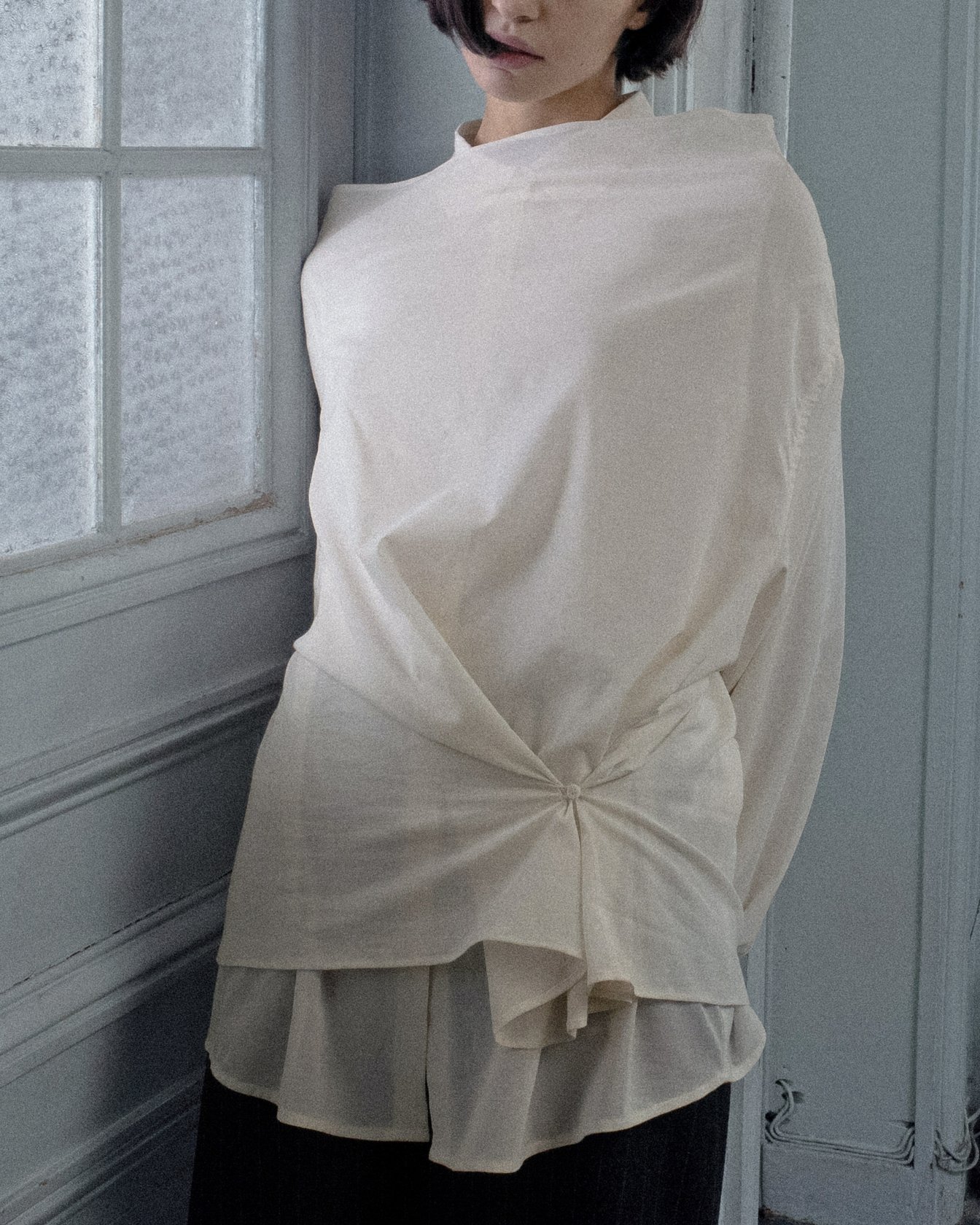 MK:そうです。デザインの仕方は仕事を通して習得しました。でも、空間デザインを学んでいた名残なのか、私の服の捉え方は少し独特なのかなと。私は服を作る時、服を人が纏うことができる、最も近い空間だと考えてデザインしているんです。その空間は、建築的、造形的に美しいだけでなく、同時に快適でなければなりません。そういった空間がもたらす心地よさを、服に込めるつもりでデザインしています。