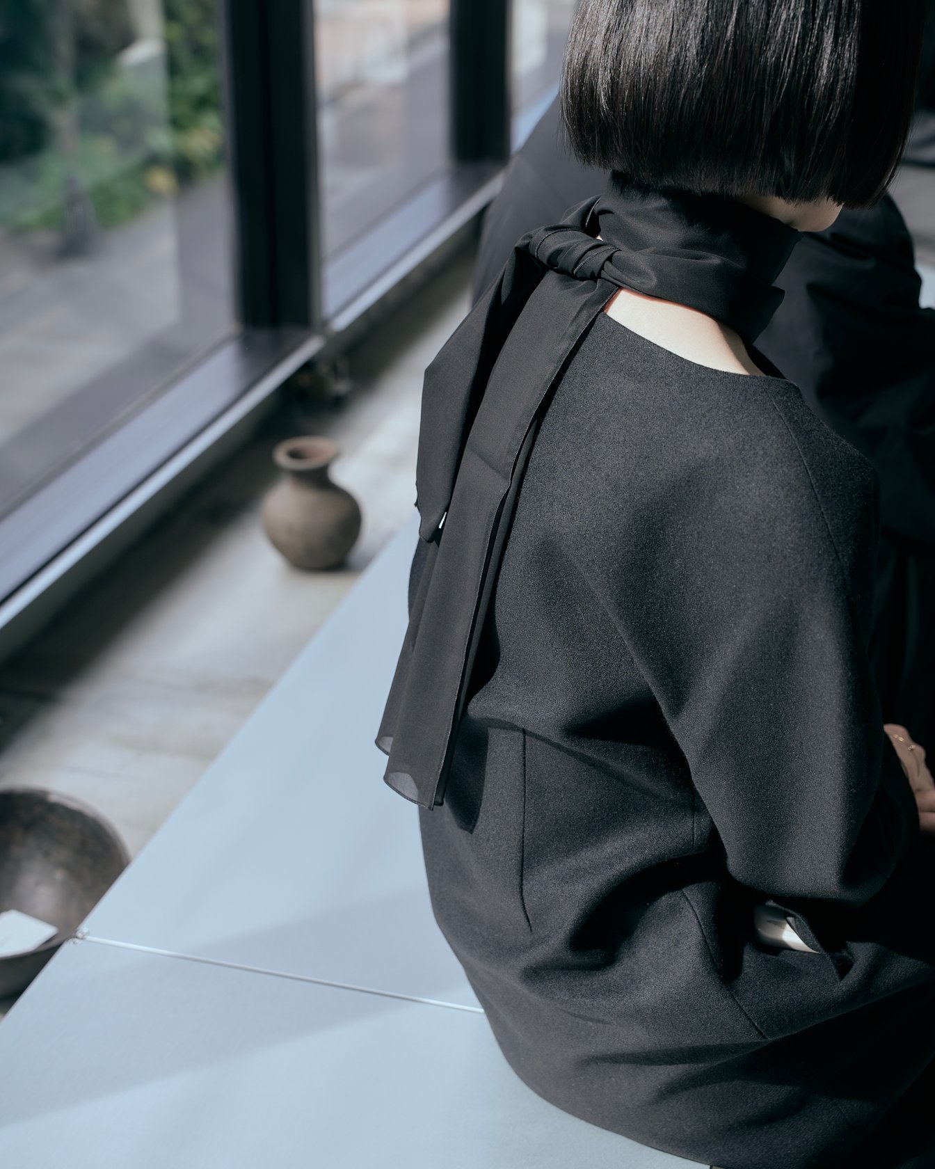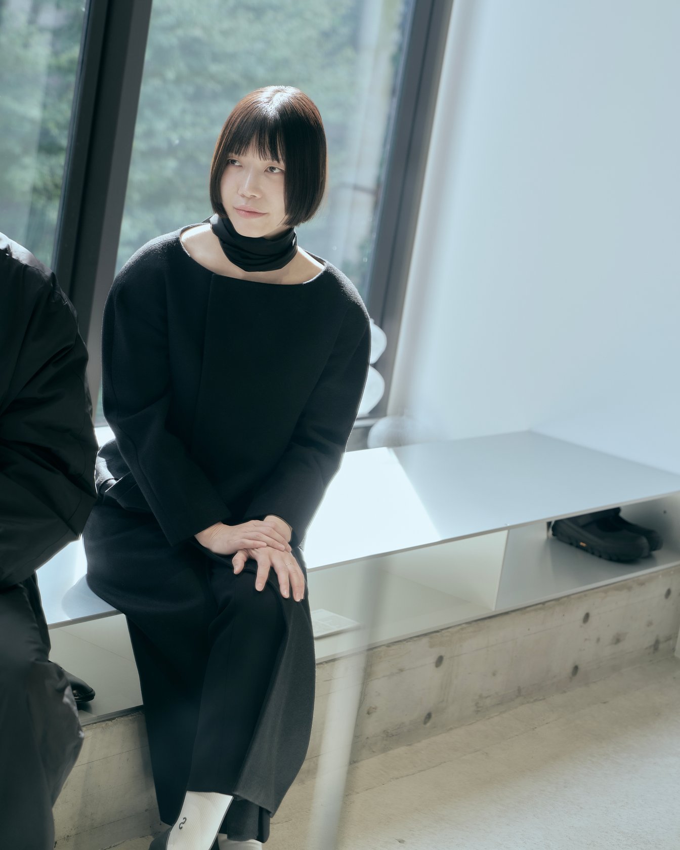 MK:人々がショッピングを楽しめるエリアから遠くなく、それでいて少し落ち着いた場所を探してたどり着いたのが、この場所でした。窓の外に広がる豊かな木々の景色も気に入っていて、都会の中にありながら自然からのインスピレーションや心の安らぎを感じられるところが魅力です。何かを誇示したり華やかに見せたりするより、静かに自分たちの声を届けたいという思いを込めた私たちのブランドの雰囲気にもとてもよく合っていると思います。